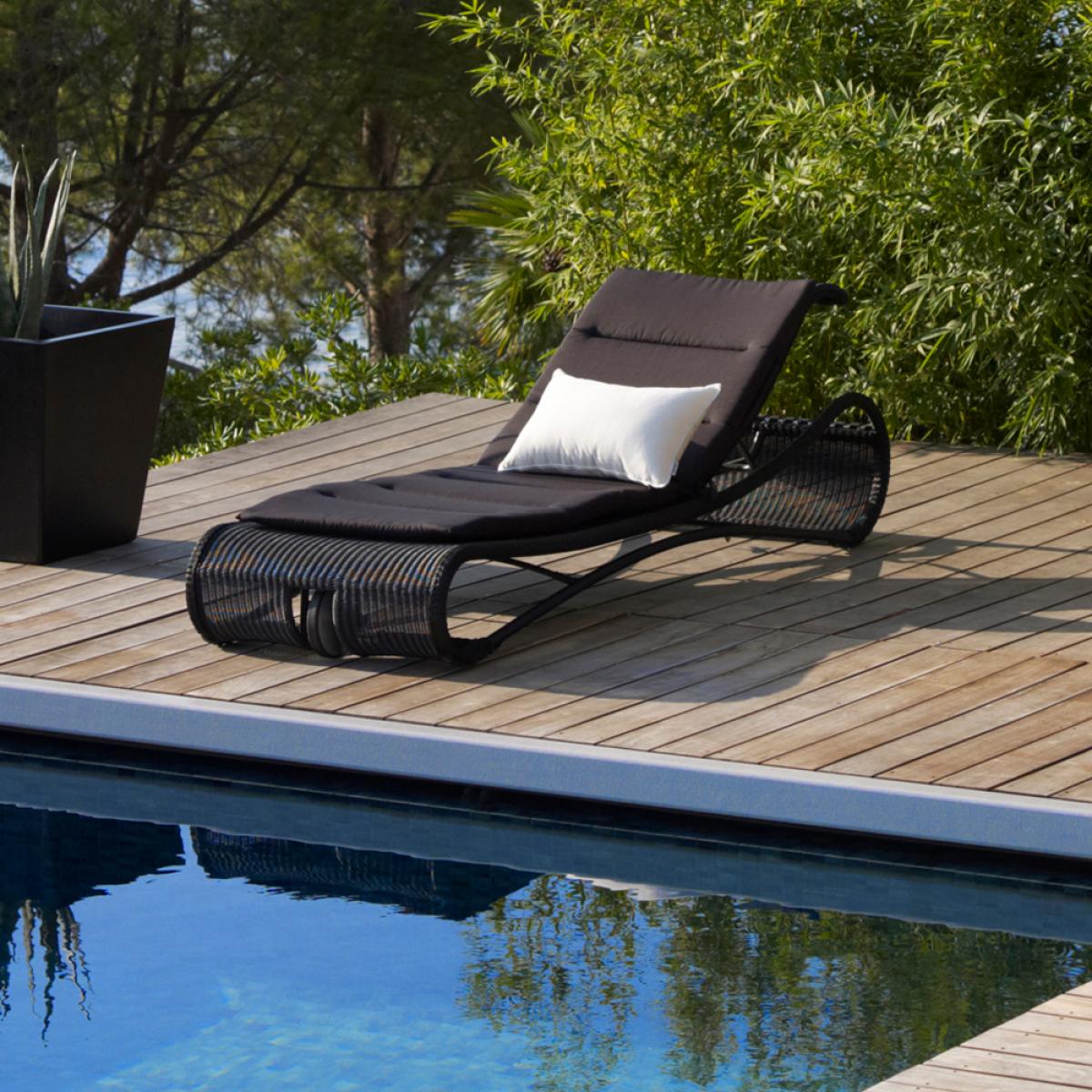 This sun lounger in black is a stylish and functional addition to both outdoor and indoor relaxation spaces. Its sleek design and neutral colour make it versatile, fitting well in modern, minimalist, or contemporary settings. When styling, consider pairing it with neutral or earthy cushions to add comfort without disrupting the streamlined look. It works particularly well in outdoor gardens, patios, or poolside areas, but can also bring a touch of modern elegance to covered terraces or sunrooms. Practical tips include layering with weatherproof cushions or throws for added comfort and using it as a statement piece amid greenery or bold outdoor furniture for a balanced aesthetic. The material's durability ensures it remains a practical yet stylish choice for year-round use.