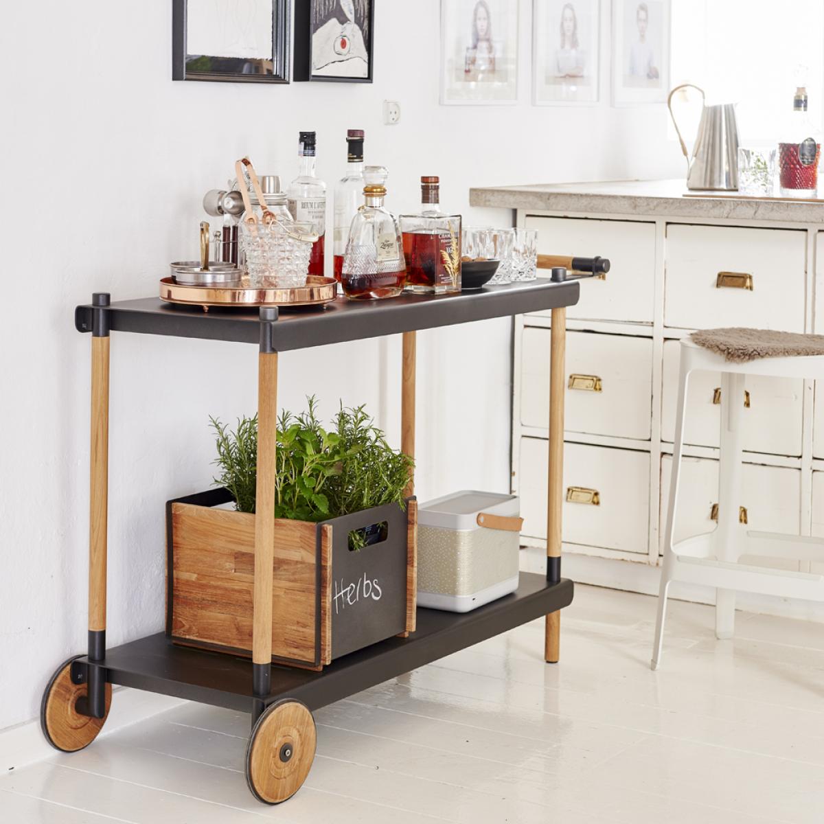 Cane-line Frame serving trolley Lava grey teak stand