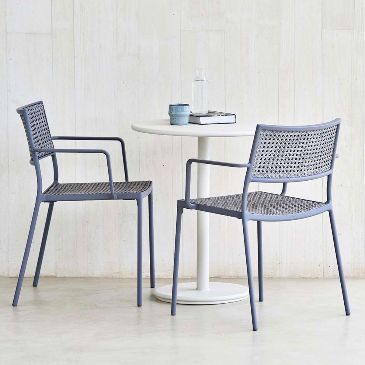 Design. Boasting stylish elegance, the Cane-line Less Stackable Armchair, French Weave, Light Grey. Will. Effortlessly. Redefine your indoor. Or. Ou. T. Door area. Designed with a minimalistic, simple structure, this chair is. Also. Stackable,. Suiting many different types of tables and spaces. The seat and back are uniquely crafted with the beautiful Ca. Ne-line French Weave in light grey while the frame is. Made from. Aluminium. With a grey powder-coated finish. This chair is also. Hardwearing. , weather. Proof and requires minimal maintenance.