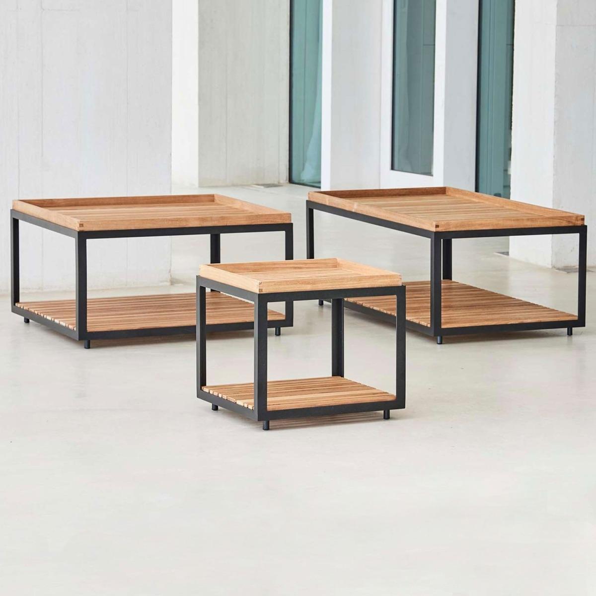 Design. The Cane-line Level Large Coffee Table. Will suit any outdoor contemporary space beautifully. The elegant, timeless design is crafted with an. Alu. Minium. Base which comes in a choice of lava grey or white powde. R-. Coated finishes, which both complement the warming certified teak tops. With the added feature of two levels, this coffee table is super practical, allowing more space for storage and decoration. Scratch-resistant, l. Ong lasting and durable, you couldn’t really ask for more.