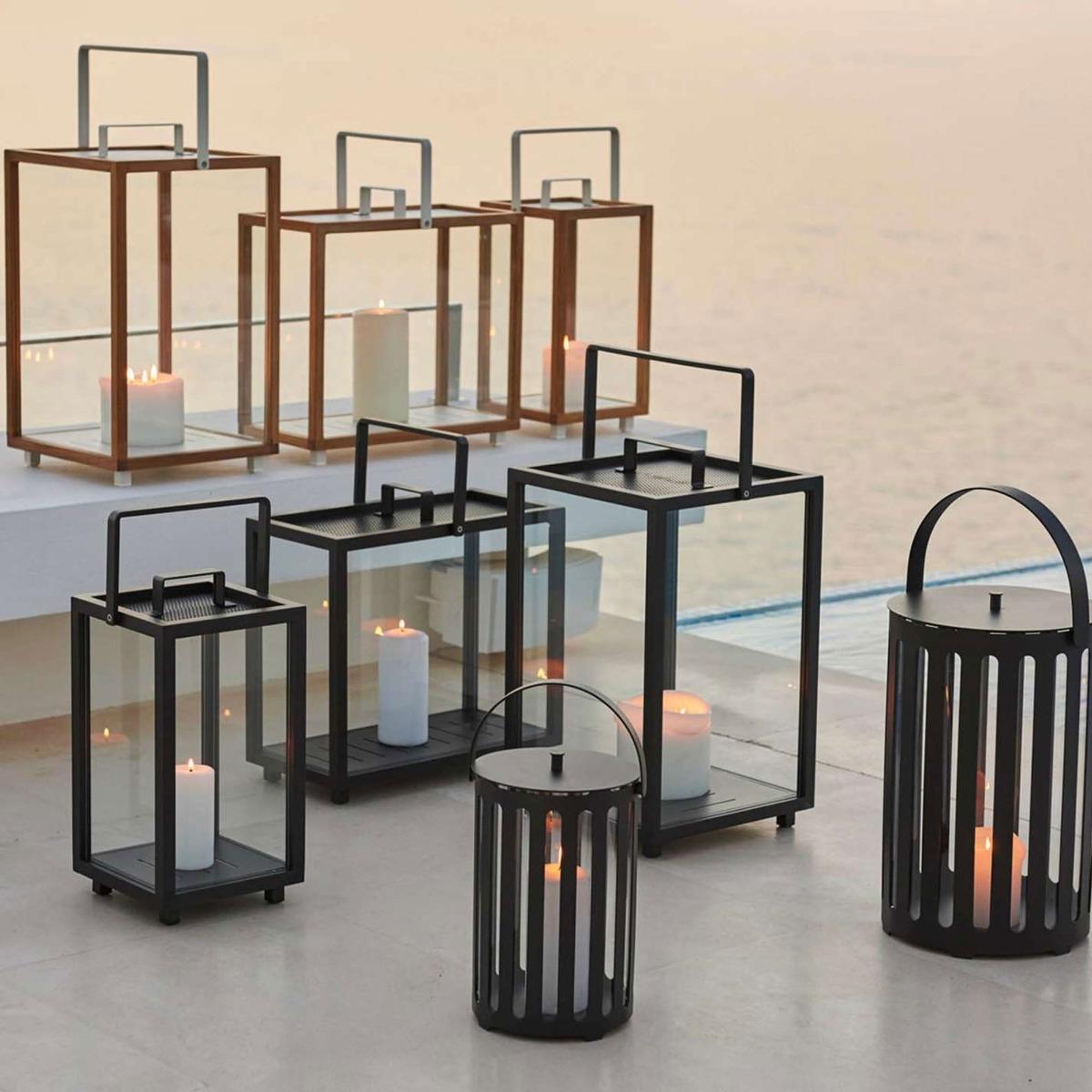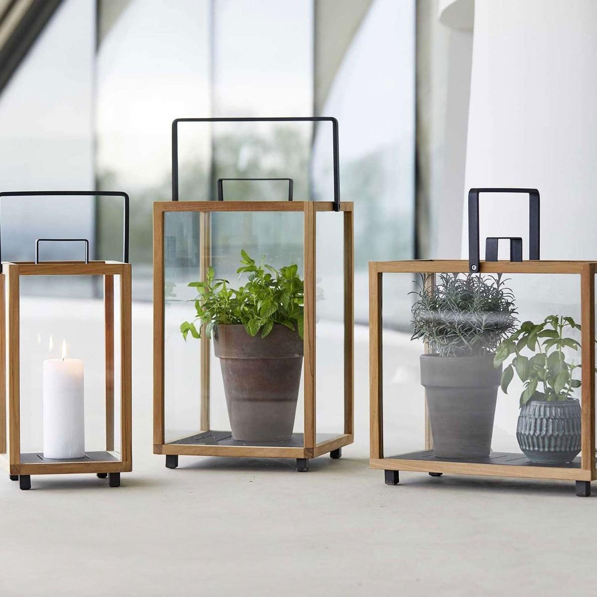 Design. The Cane-line Lighthouse Set of 2, Teak Aluminium, Indoor Outdoor, Rectangle Lanterns. Are the ideal accessories to add to any indoor. Or outdoor area. Adding warmth, style and comfort. These lanterns can be enjoyed with. A candle atmosphere in your garden on a summers evening or in your living space on a dark cozy night. Super versatile, these can also be used for decorative plants or as your own little greenhouse to grow your herbs.
