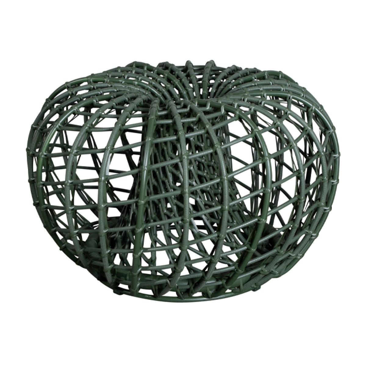 The small wacky-looking green table is a versatile piece that works well in both contemporary and more relaxed outdoor settings. As a garden table or footstool, I love how its natural, woven design adds texture and a touch of organic charm to a patio or balcony. It's ideal for pairing with neutral outdoor furniture or colourful cushions, creating an inviting corner for lounging or evening drinks. To style it effectively, consider stacking a tray on top with candles or plants for added visual interest, or utilise it as a side table alongside a lounge chair. Its compact size makes it practical for smaller outdoor spaces, offering flexibility without cluttering the area.