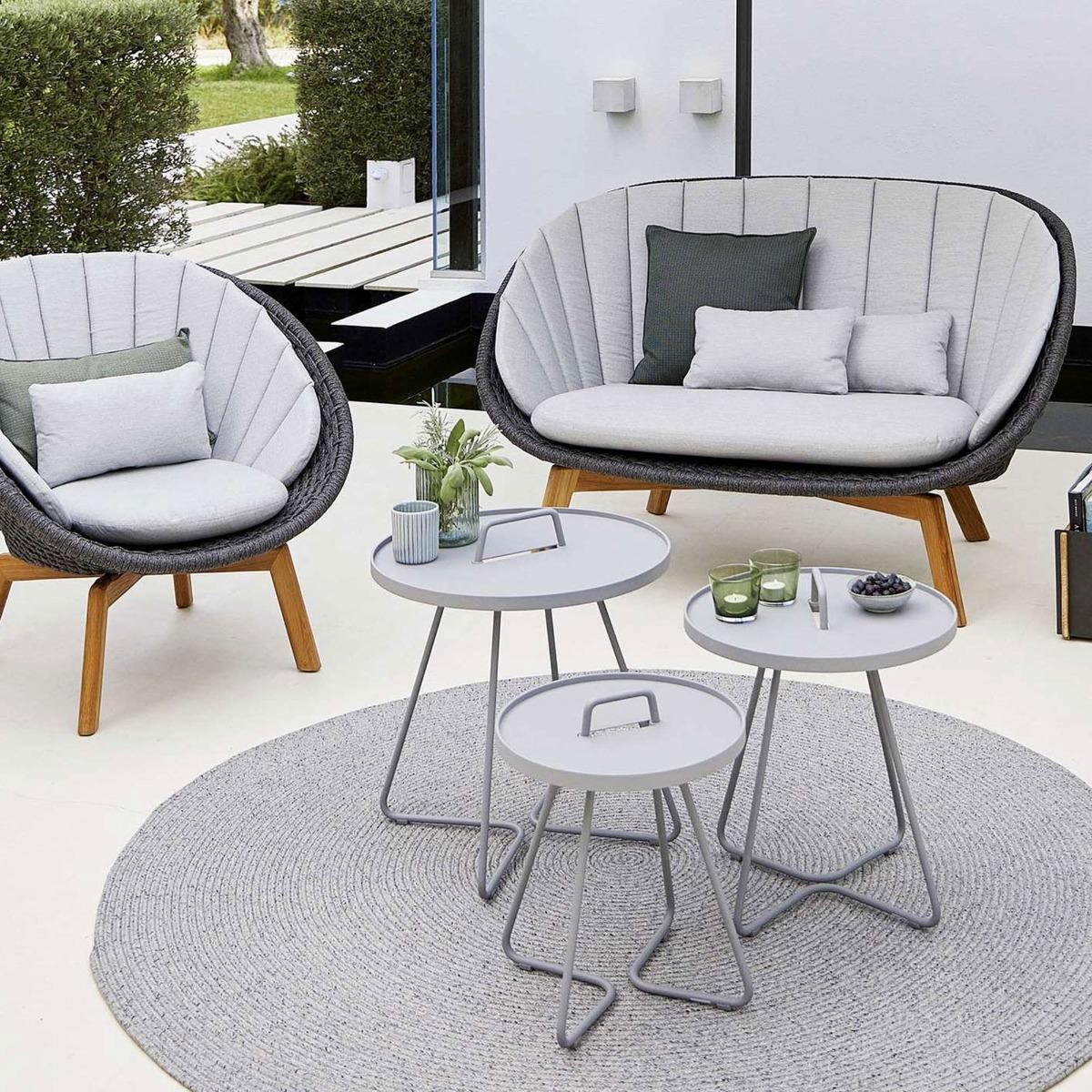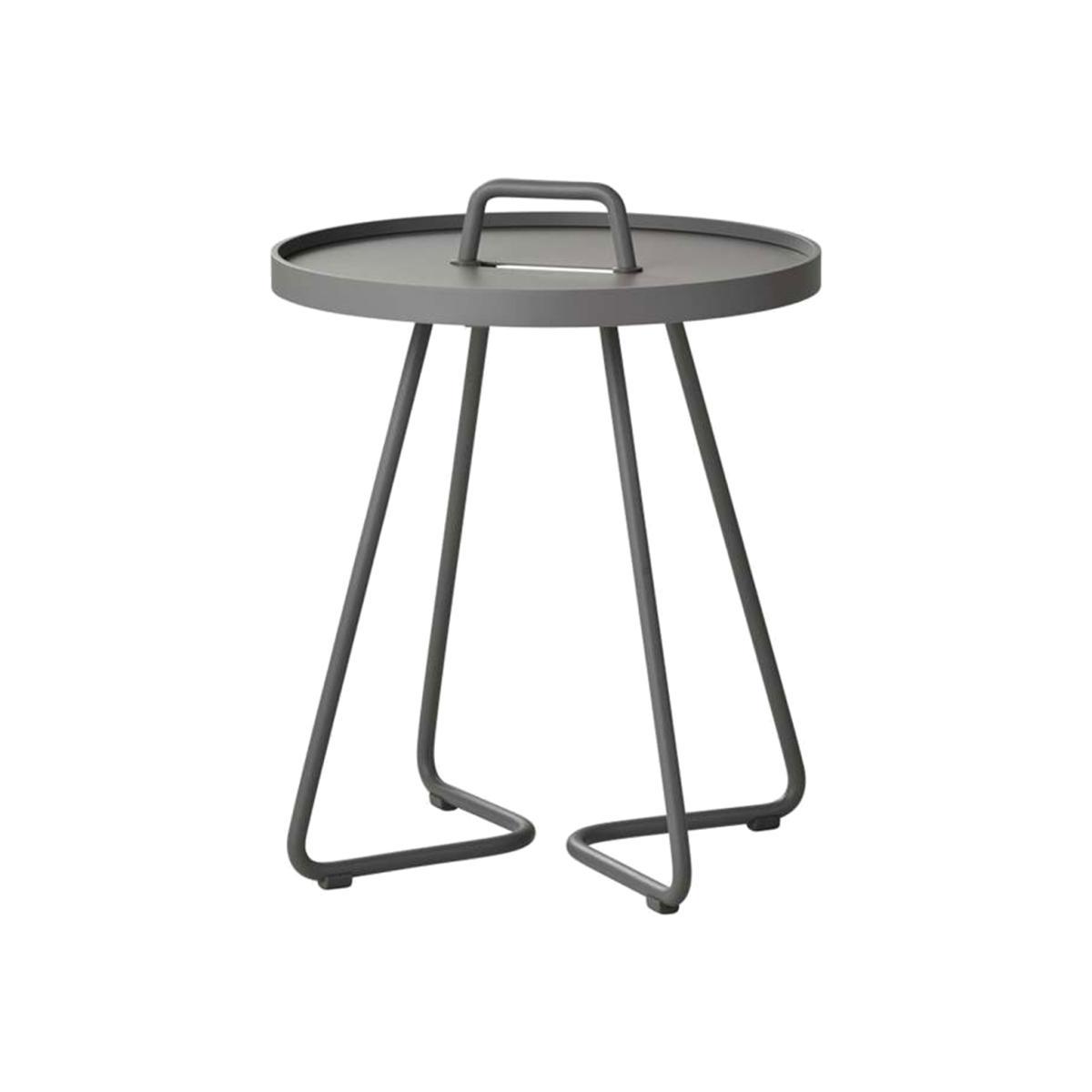 Design. The Cane-line On-the-move Side Table, Extra Small has minimalist, stylish and super practical design. Crafted from. Weather-resistant. Powder-coated. Aluminium. Which is available in light grey, white and black finishes, this side table will suit most outdoor settings. Cleverly. ,. Featuring a handle so it can. Easily be carried around, and a removable plate than can transform the table from a stunning side table into a convenient tray in seconds. , this table is the gift that keeps on giving. Explore the Cane-line On-the-move range for different size and. Color. Options to create your perfect outdoor setting.