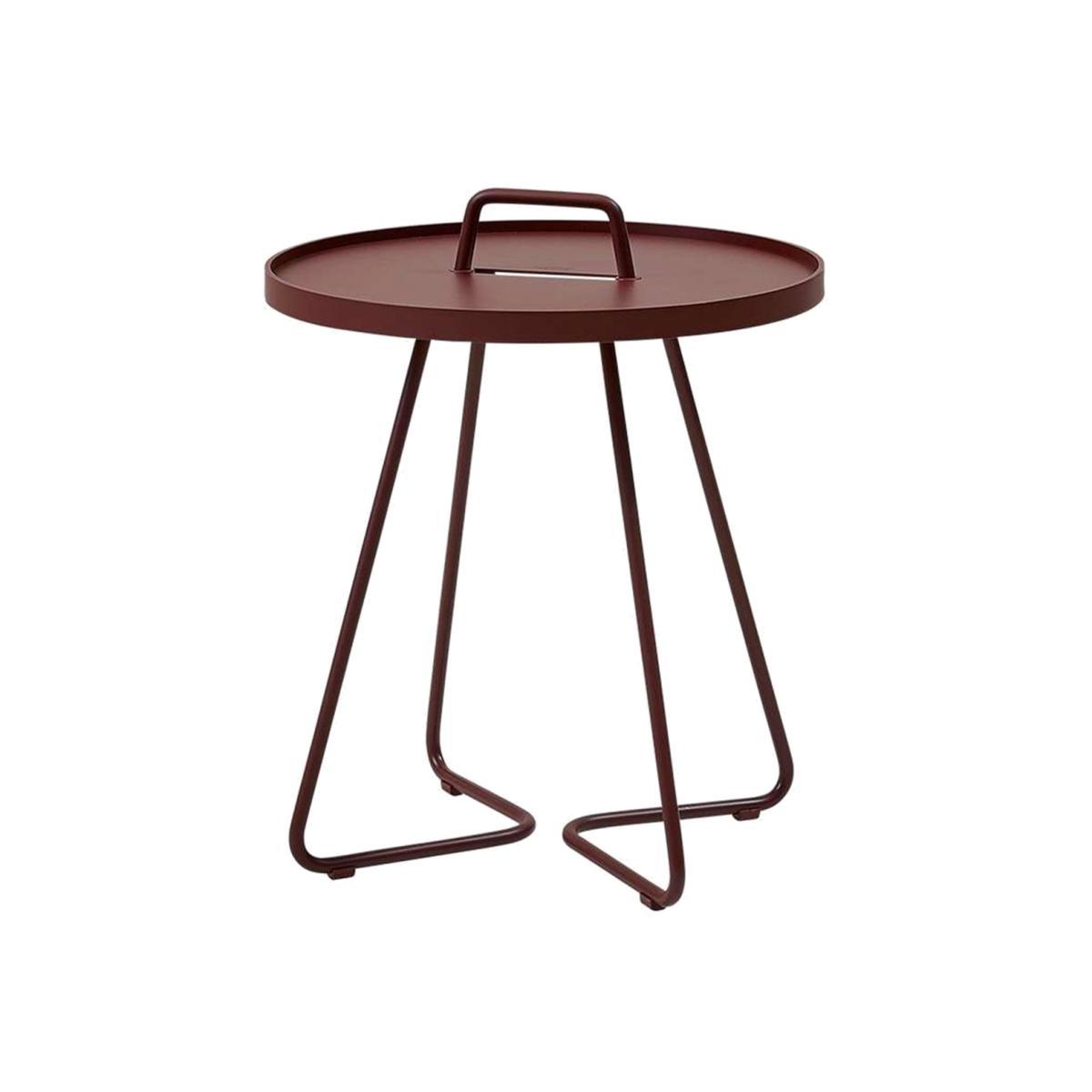 Minimalistic, elegant and practical, the Cane-line On-the-move Side Table, Small will suit many outdoor settings. Intelligently designed from powder-coated aluminium which is available in many colors both neutral and bold, this table features a handle so it can be easily moved and a removable plate, transforming a beautiful side table into a handy serving tray in no time.  Explore the different colors and sizes of this exceptional range and find the table thats perfect for you.
