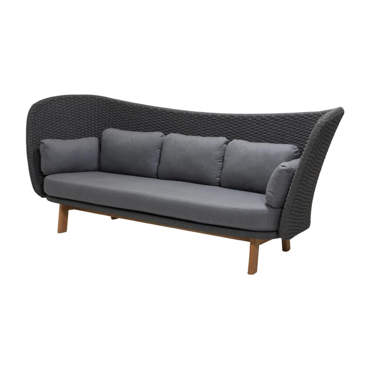 Cane-line Peacock Rope 3-seater sofa Cane-Line Natté dark grey incl. grey cushions legs in teak