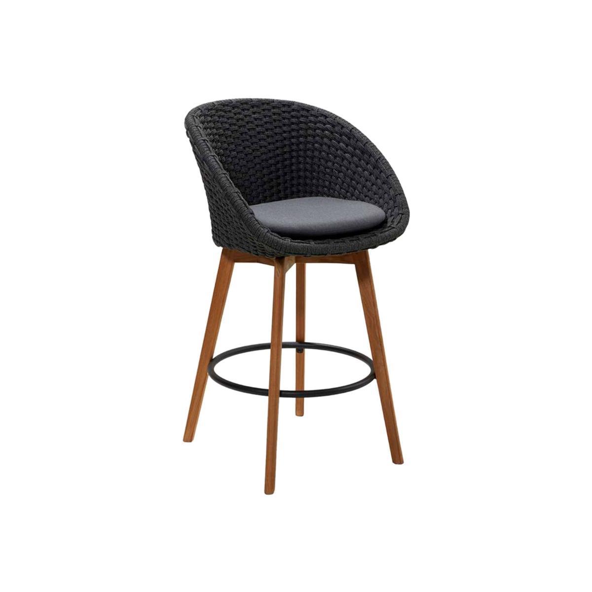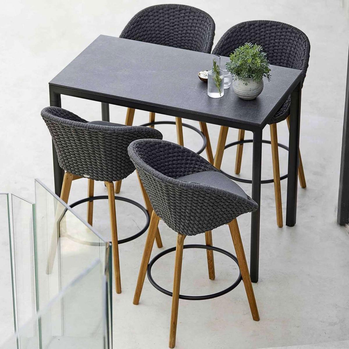 Design. The sublime Cane-line Peacock Bar Chair with Cushion will. Certainly spruce up. Any. Outdoor setting, transforming it into a stylish, contemporary. Place you and your loved ones will never want to leave. Crafted from the superb Cane-line Soft Rope, th. Ese. Chair. S are temperature. And UV-resistant, suitable for any climate. The. Teak legs provide a warm, inviting glow. To. The modern chairs and it’s complete with a comfortable. Cane-line. Natte. Cushio. N,. Available in both grey and light grey.