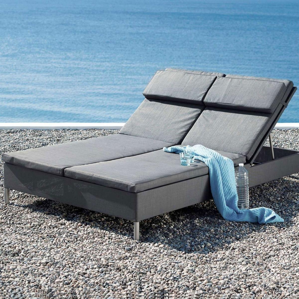 Design. Relax and enjoy a gorgeous summer day. With your partner or best friend. On the beautiful Cane-line Rest Double Sunbed, Grey Tex. The elegant and classic design is made from. Aluminium. And. Cane-line. Tex. While the cushions are filled with. QuickDryFoam. Making this sunbed extremely comfortable, long lasting and durable. , requiring very little maintenance. The two small wheels make it easy to move and get those sun angles. , while. The adjustable. Backrest is perfect. If you’re wanting to take a break with a book or some refreshments.