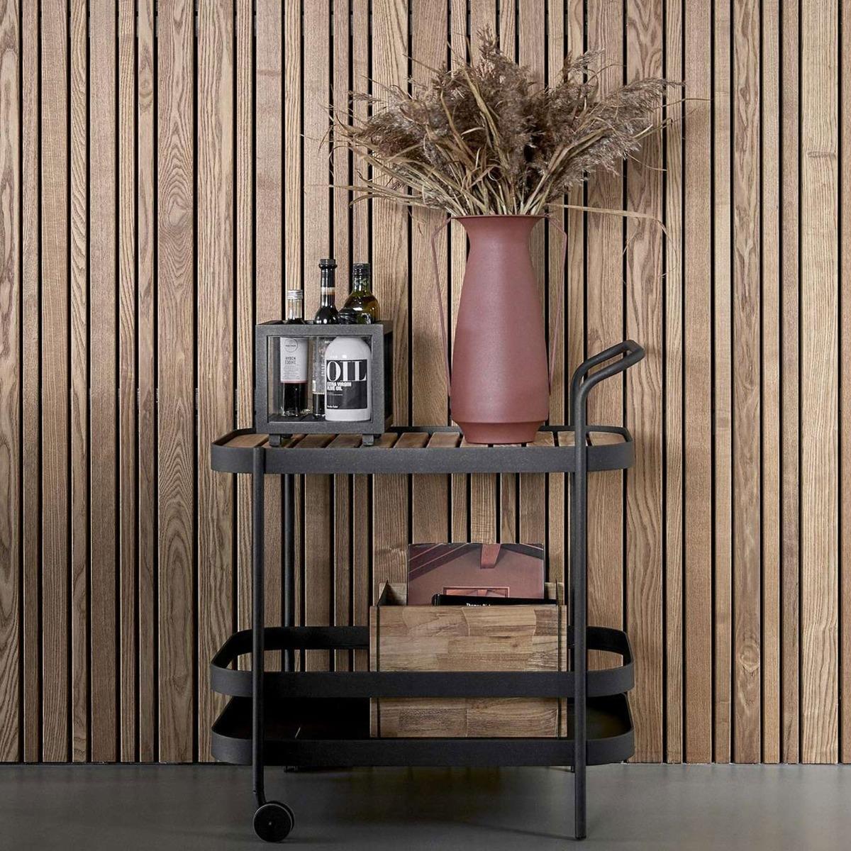 I love this trolley for its sleek, functional design that effortlessly blends contemporary style with practicality. It works particularly well in modern or coastal-inspired interiors, where its minimalist frame and teak tabletop add warmth and texture. The Cane-line Roll Bar Trolley is perfect for entertaining, serving drinks or snacks with ease, and its mobility makes it versatile for outdoor patios or indoor kitchens. Styling tips include pairing it with neutral tones and natural materials to emphasise its understated elegance, or adding colourful glassware and accessories for a lively, inviting feel. Keep accessories simple to let the trolley’s clean lines be the focal point, and it’s a practical addition that brings both style and convenience to any space.