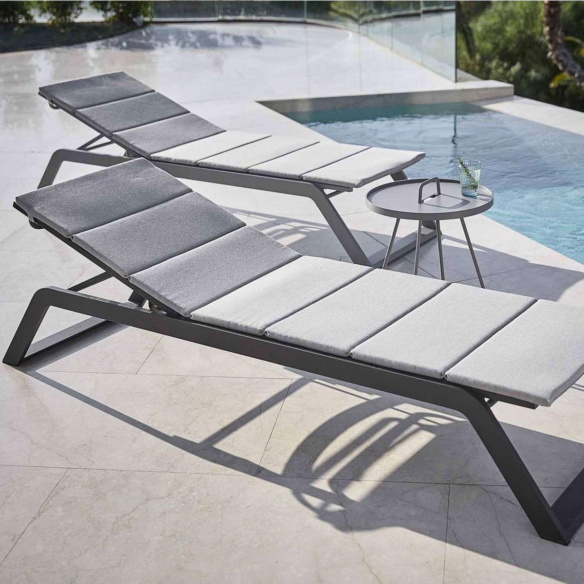 Design. Up your garden game with the remarkable Cane-line Siesta Sunbed, Light Grey. The classy, elegant design is crafted with po. Wder-coated. Aluminium. Then coated in Cane-line. Tex. , and complete with a Cane-line Virtue cushion. Comfortable, highly durable and totally weather-resistant, this sunbed can be used. Globallyin any climate. This sunbed is also easily stackable, taking up less space when it comes to. Storage.
