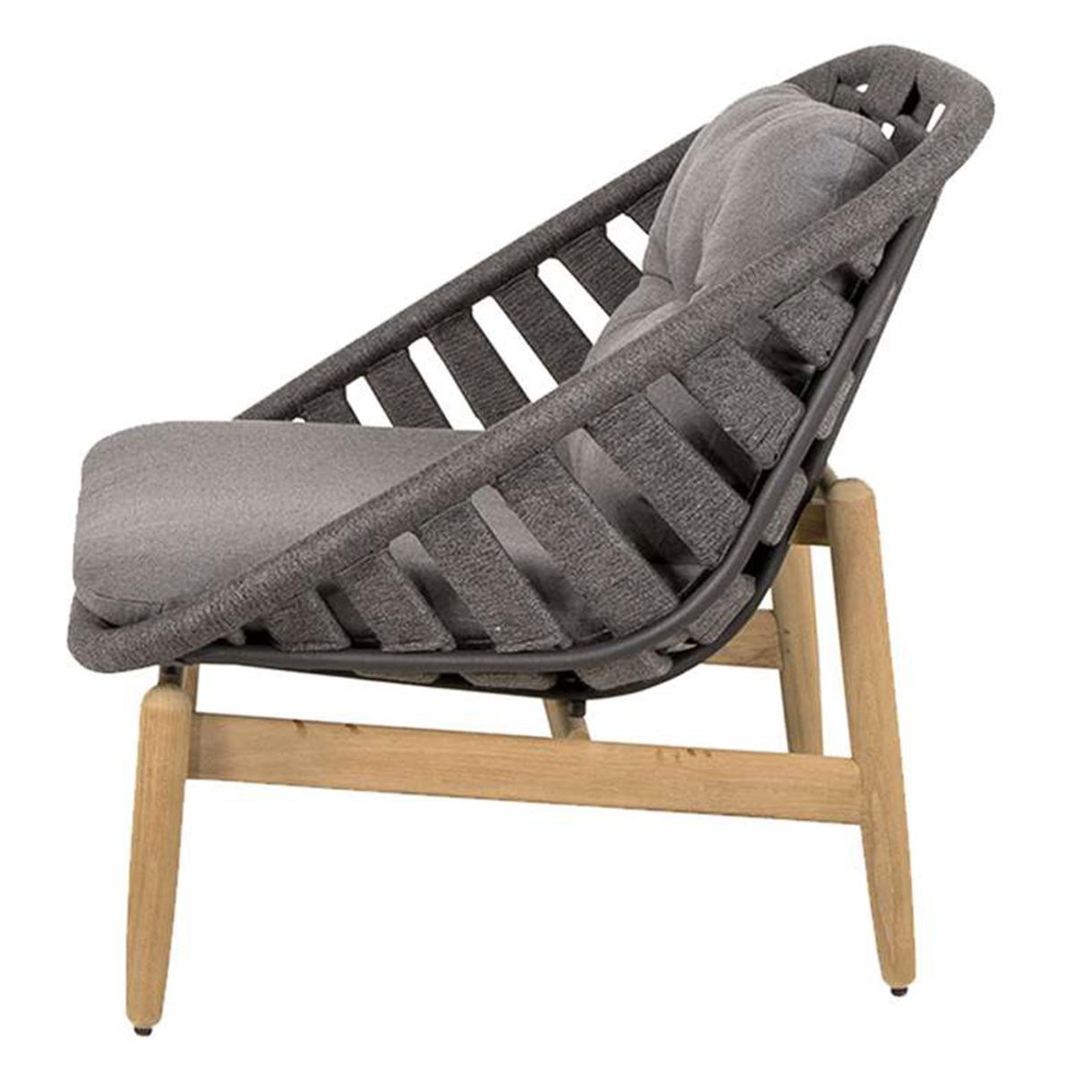 Elegant and inviting, the Cane-line Strington Lounge Chair, Dark Grey, Teak will stylishly spruce up your outdoor setting.  The seat is crafted from weather-resistant and sturdy Cane-line Soft Rope, held up on a strong aluminium frame with the warming glow of teak. The Cane-line Air. Touch cushions with QuickDry and Air. Flow system provide extreme comfort and practicality, perfect for all year round.