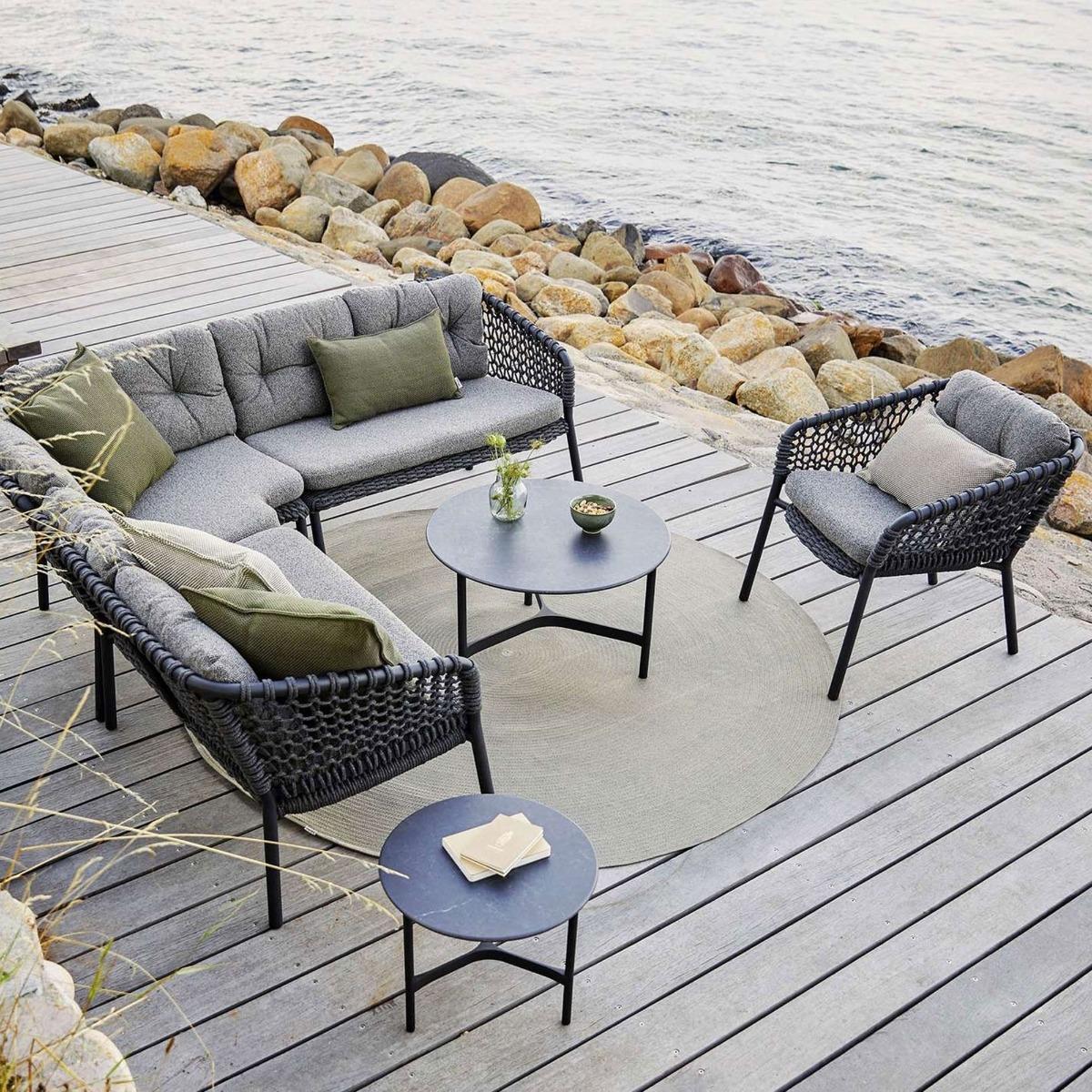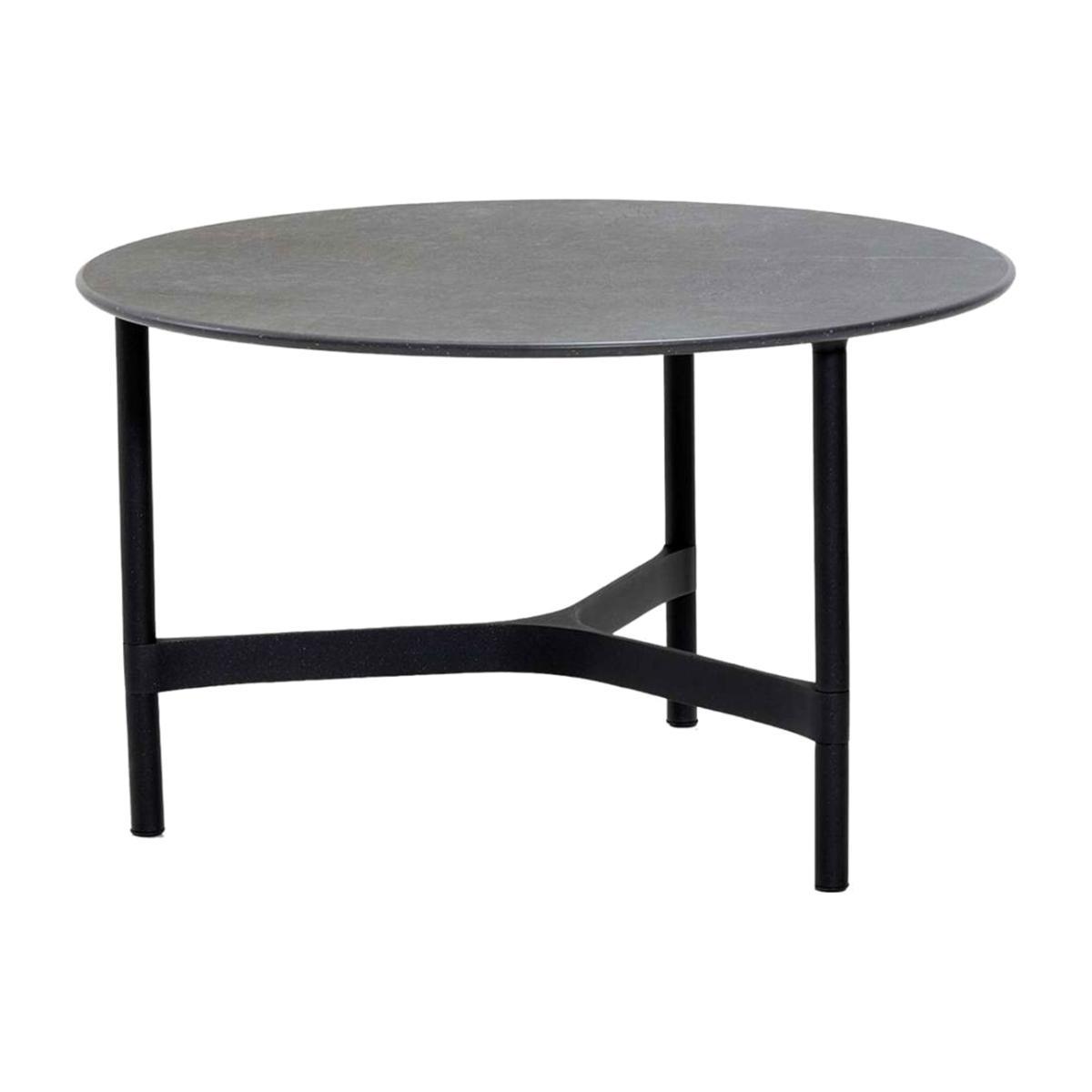 Design. Ultra-modern and diverse, the Cane-line Twist Medium Coffee Table can be used both indoors and outdoors. W. Ith a lava grey. Aluminium. Base. Complete with either a fossil black or fossil grey ceramic top, the sophisticated design suits most spaces. Hard wearing, scratch-resistant and a minimal upkeep, this stunning coffee table is the gift that keeps on giving. Also available in small and large, try pairing together for a combined nest. Of tables look.