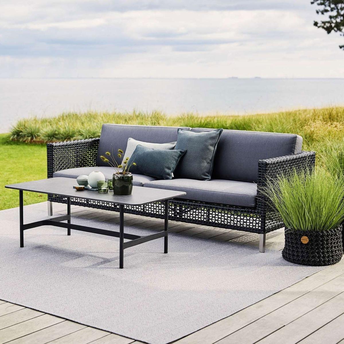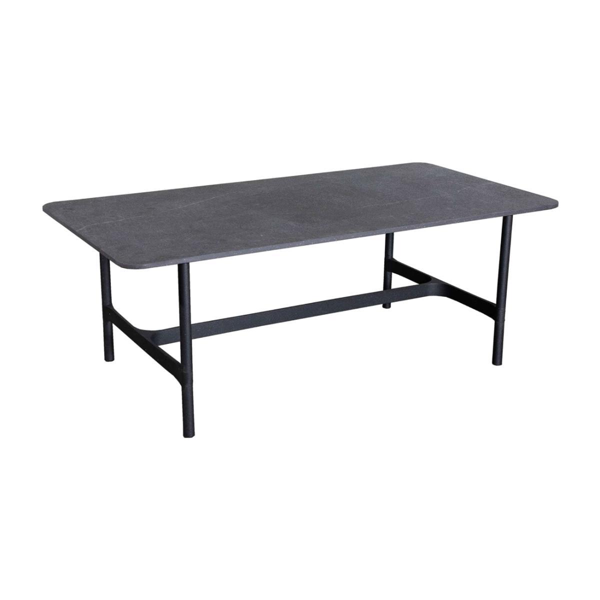 Design. Stylish, classy and elegant, the Cane-line Twist Rectangular Coffee Table. Has a minimalist design that will suit any indoor or outdoor space. The lava grey powder-coated. Aluminium. Base is complete with a choice of two. Tabletops:fossil black and fossil grey ceramic, both suiting any modern décor. Like all Cane-line pieces, these top quality materials are highly durable, long lasting and require minimal maintenance.