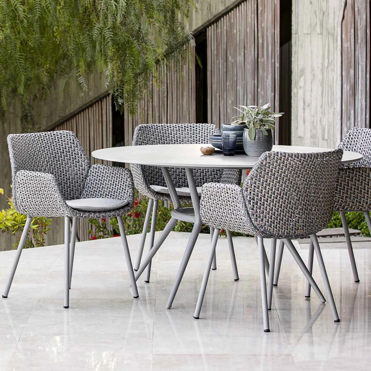 I love the Cane-line Vibe chair for its contemporary design and versatile colour palette, which allows it to work seamlessly in both modern and eclectic outdoor spaces. Its light grey base provides a neutral canvas, while the Bordeaux and dusty rose accents add a subtle pop of colour, making it perfect for mixing with other muted tones or bold statement pieces. This chair is ideal for alfresco dining or garden lounging, but it also blends well in indoor conservatories or sunrooms with a relaxed, stylish vibe. For practical styling, consider pairing it with soft-textured cushions or a cosy throw in coordinating shades, and layer with a variety of plant life or outdoor lighting to enhance its visual appeal during social gatherings.