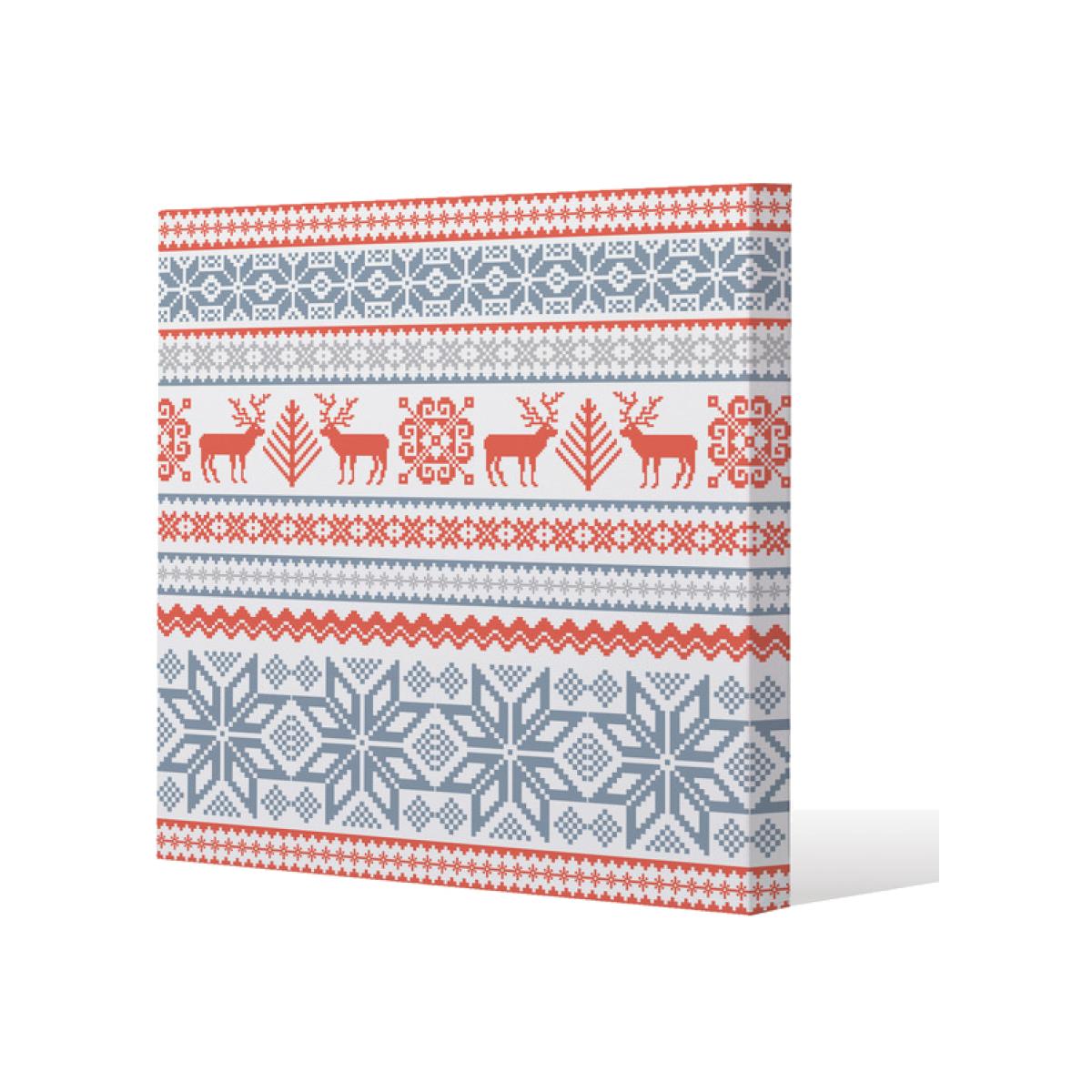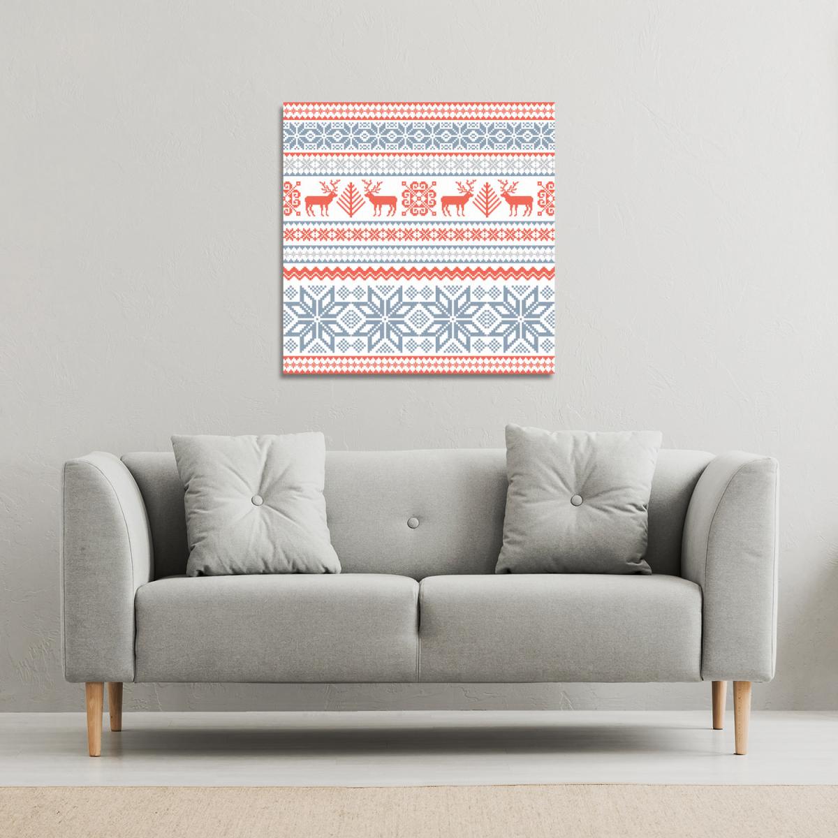 I love this Christmas pattern canvas for its bold, festive design that instantly adds a seasonal touch to any space. It works particularly well in snug living rooms, kitchens, or even a playful hallway where holiday cheer is welcomed. The red and blue palette makes it versatile enough to complement both traditional and contemporary interiors. For styling, I’d suggest pairing it with neutral furnishings to let the artwork stand out - think beige or white walls, simple wooden frames, or minimal accessories. Additionally, placing it above a sofa or sideboard can create a focal point that ties the room’s colour scheme together during the festive season.