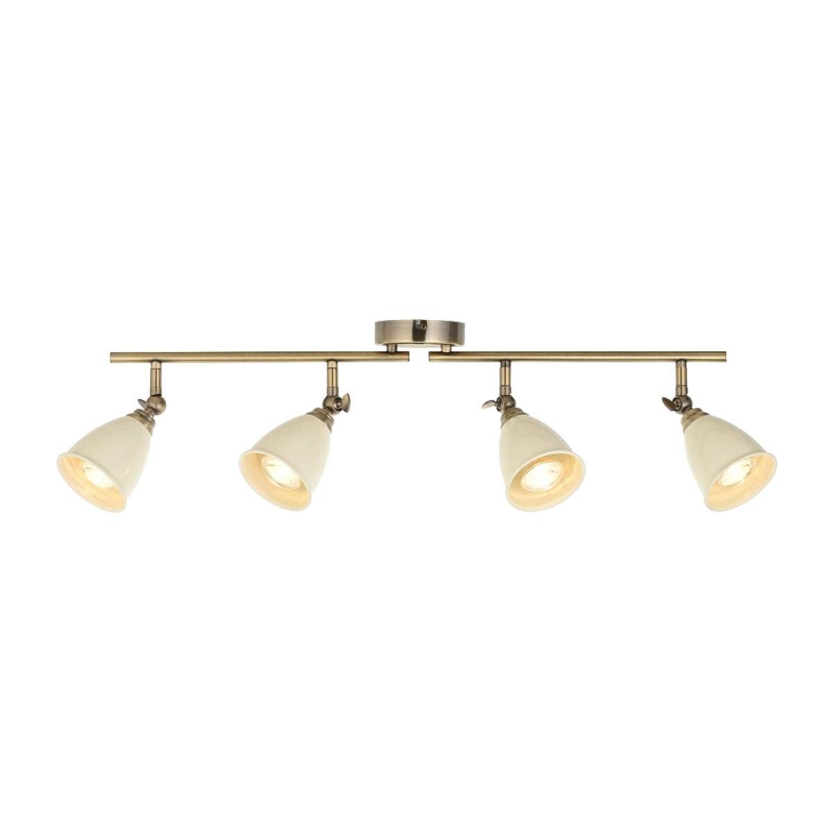 Illuminate your space with timeless elegance using the. Perfect for kitchens, hallways, or living areas, this beautifully crafted spotlight bar combines vintage charm with modern functionality. Featuring a warm antique brass plate finish and sleek gloss putty painted shades, the Canford adds a touch of sophistication to any interior. Each of the four adjustable steel spotlights allows you to direct light precisely where it’s needed, offering both style and practicality.