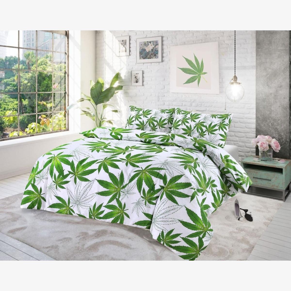 Cannabis Duvet Cover Set Leaf Bedding - Green / Superking