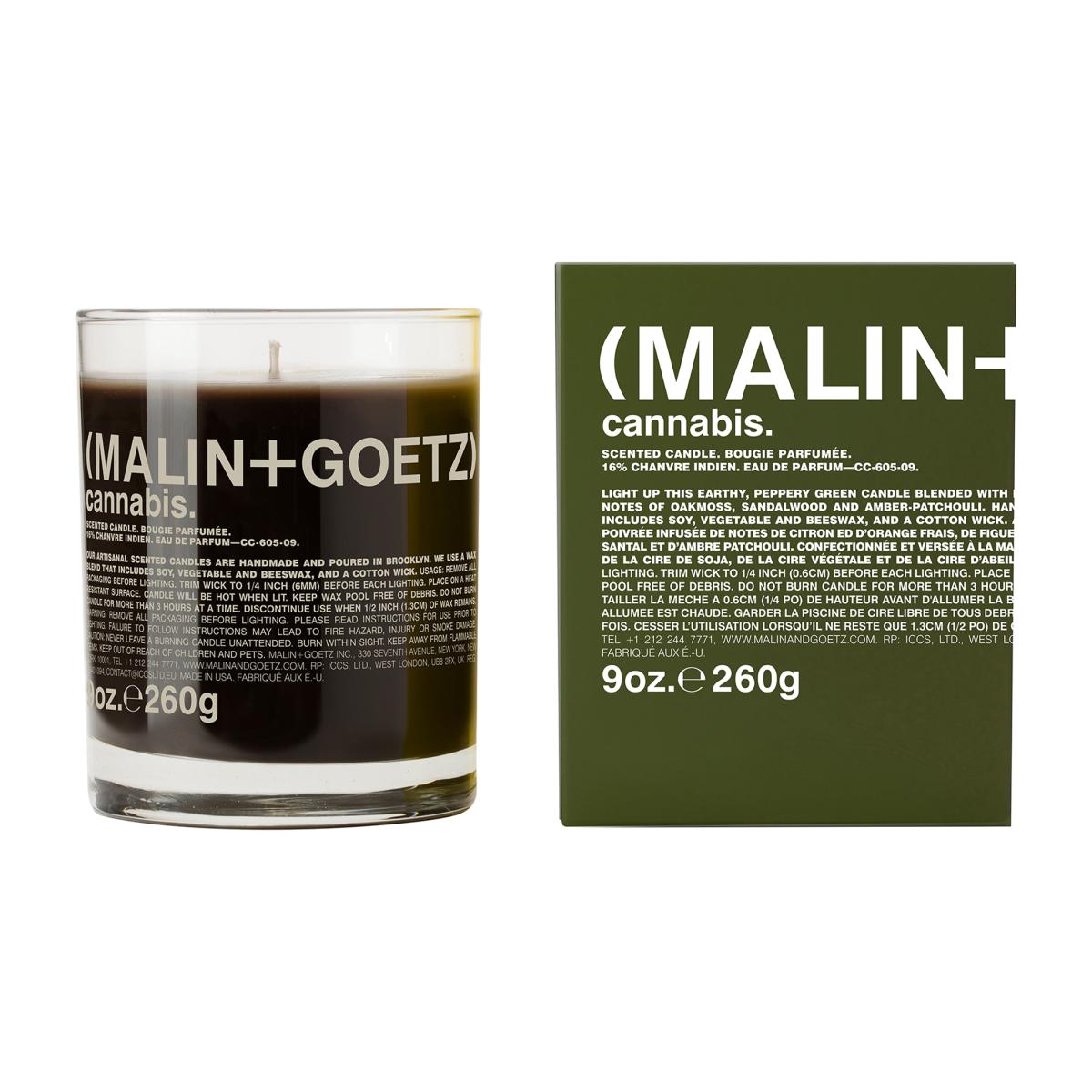 Presented in a clear glass vessel and blended by hand in Brooklyn, MALIN+GOETZ's Cannabis Scented Candle will enhance your space with its spicy, herbaceous scent. Providing an even burn for up to 60 hours, this natural wax candle will fill your room with its bold aroma long after the candle has finished burning. Notes of oakmoss, sandalwood, amber and patchouli create the perfect base for heart notes of fig and pepper, as well as top notes of fresh lemon and orange to finish. As the candle burns clean, it can be reused as a cocktail glass, for innovative storage and as part of a decorative display. Founded by Matthew Malin and Andrew Goetz as a luxury answer to their own skincare problems, MALIN+GOETZ opened its first store in New York's Chelsea neighbourhood in 2004. Today, its products are still blended within a 90km radius of the first store.