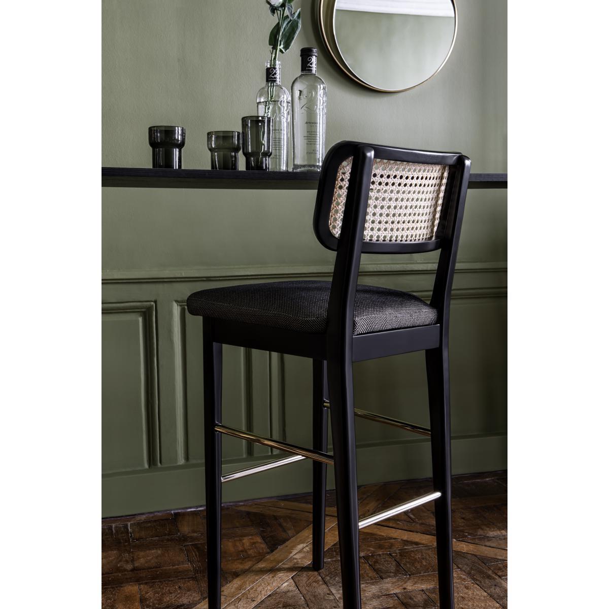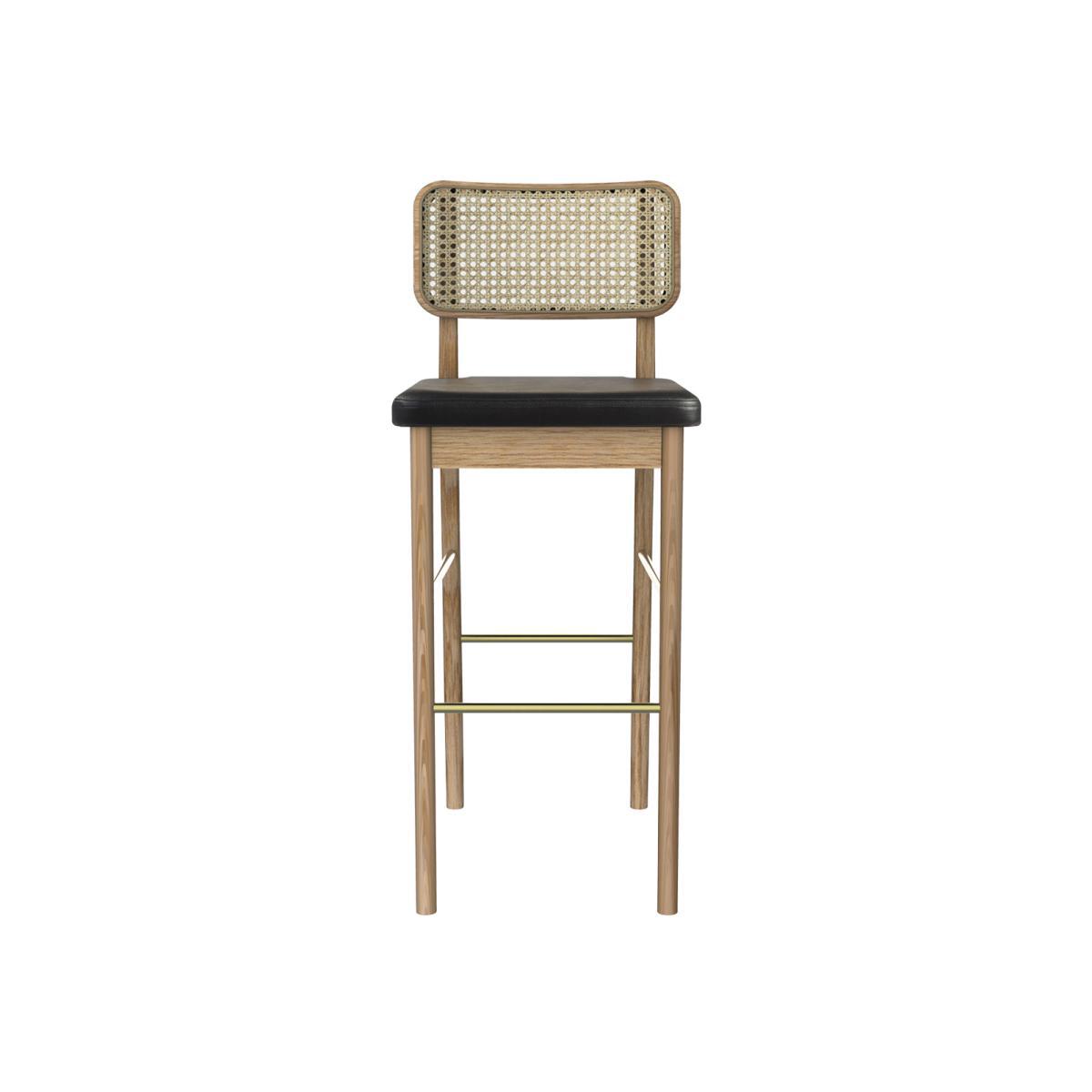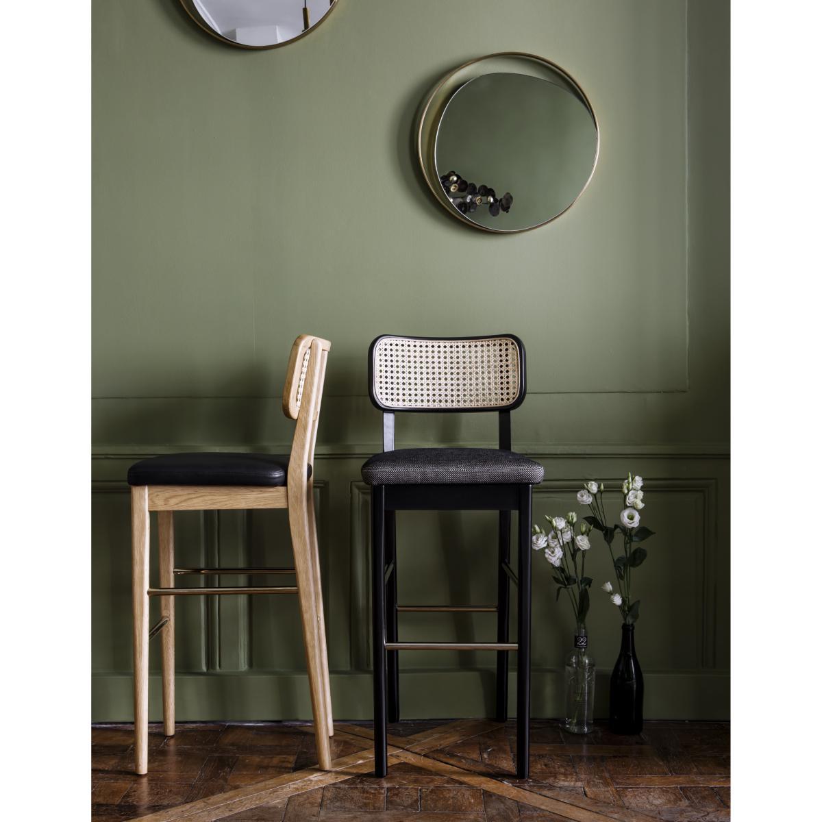 I love this barstool for its blend of natural wood and leather, which creates a balanced mix of warmth and sophistication. It works particularly well in both contemporary and classic interiors, especially those with a neutral or earthy palette. The cane detailing on the back adds a touch of texture without overpowering, making it versatile enough for kitchens, bars, or breakfast booths. Practical styling tips include pairing it with minimalist metallic accessories or contrasting it with cosy textiles for a layered look. Because of its height and sleek profile, it’s perfect for high counters or breakfast bars, offering comfort and style in one neat package.