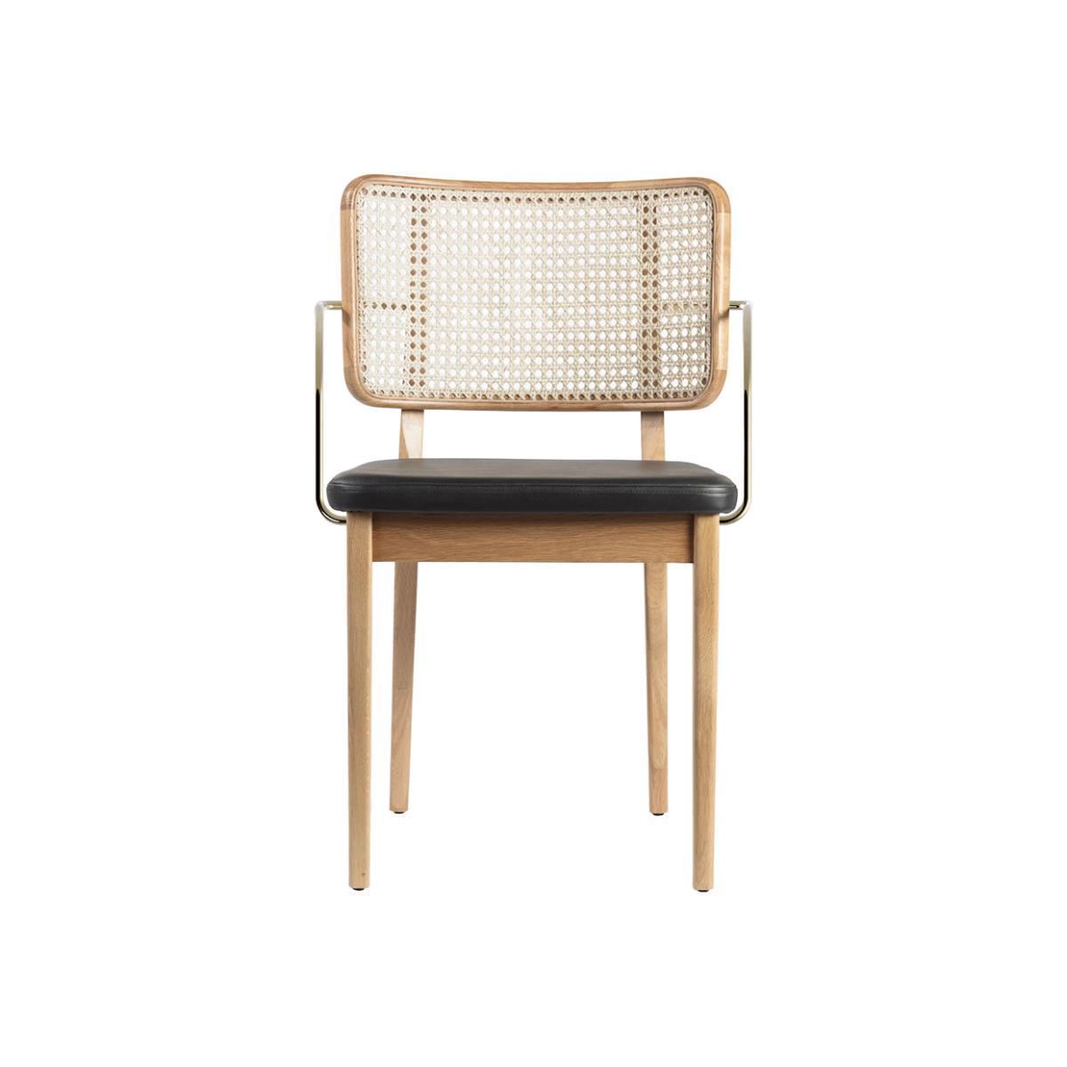 Fifties inspiration! This upmarket bistro-style armchair revisits the use of cane-work with modernity and elegance. This retro-looking armchair offers a superb combination of fine materials. Each detail underlines the know-how of Italian artisans. The natural rattan cane backrest combines with a luxurious seat upholstered in leather. Refined and very chic indeed, the cane-work plays with transparency and openwork effects. The solid oak structure is adorned with elegant armrests in gilded brass. Mixing influences, the Cannage armchair is a clever mix of vintage inspiration and contemporary lines. Very sophisticated, this armchair reflects the French way of life cultivated by Parisian brand Red Edition. It blends in with all styles, creating a soft, cosy, glamorous and inspiring feel. Parisian brand Red Edition invites you to rediscover the French way of life with modern design codes. Its recipe: a Parisian signature, clean lines and a requirement for noble materials.