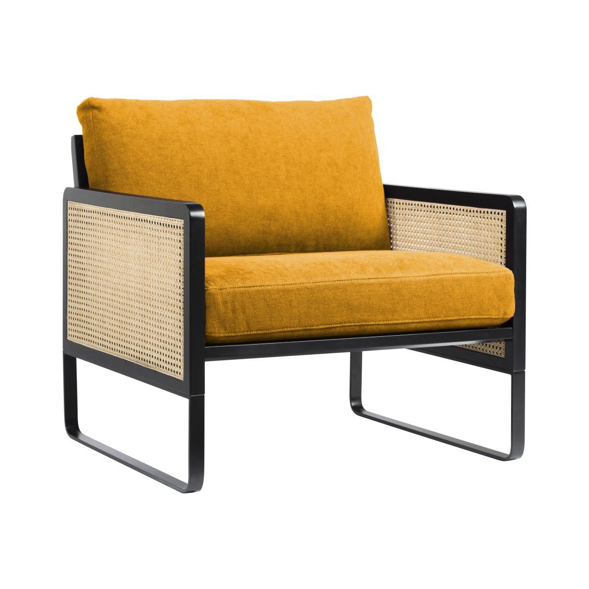 Fifties inspiration! This top-of-the-range armchair revisits the use of cane with modernity and elegance. Refined and very chic, cane-work becomes the star of your decoration. This retro-looking armchair offers a superb combination of fine materials. The refined structure in black stained beech is embellished on the sides with natural rattan cane panels. As an extension of the structure, the base is in black lacquered steel. The generously padded seat is covered with an elegant cotton fabric. Mixing influences, the Cannage armchair is a clever mix of vintage inspiration and contemporary lines. Very sophisticated, this armchair reflects the French way of life cultivated by Parisian brand Red Edition. It blends in with all styles, creating a soft, cosy, glamorous and inspiring feel. Parisian brand Red Edition invites you to rediscover the French way of life with modern design codes. Its recipe: a Parisian signature, clean lines and a requirement for noble materials.