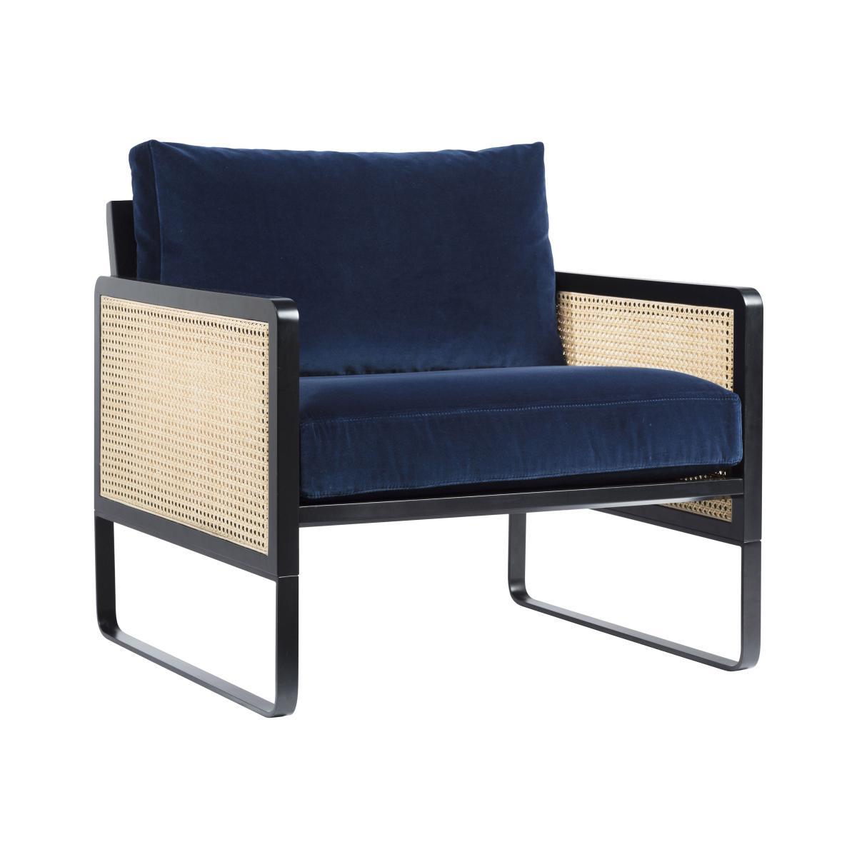 Fifties inspiration! This top-of-the-range armchair revisits the use of cane with modernity and elegance. Refined and very chic, cane-work becomes the star of your decoration. This retro-looking armchair offers a superb combination of fine materials. The refined structure in black stained beech is embellished on the sides with natural rattan cane panels. As an extension of the structure, the base is in black lacquered steel. The generously padded seat is upholstered in luxurious velvet. Mixing influences, the Cannage armchair is a clever mix of vintage inspiration and contemporary lines. Very sophisticated, this armchair reflects the French way of life cultivated by Parisian brand Red Edition. It blends in with all styles, creating a soft, cosy, glamorous and inspiring feel. Parisian brand Red Edition invites you to rediscover the French way of life with modern design codes. Its recipe: a Parisian signature, clean lines and a requirement for noble materials.