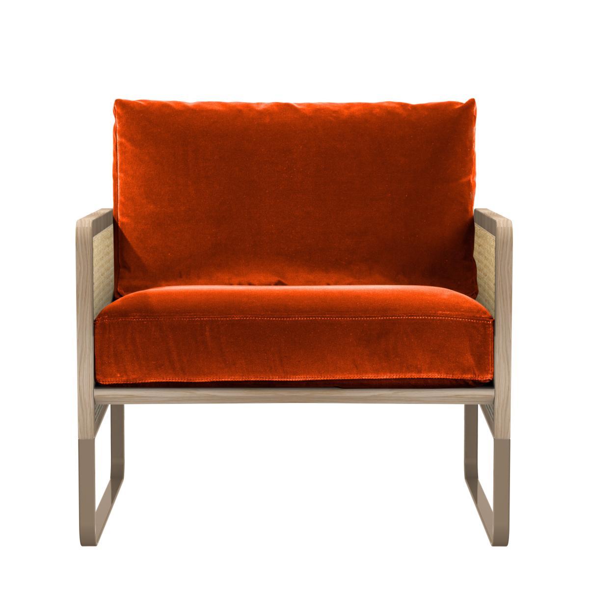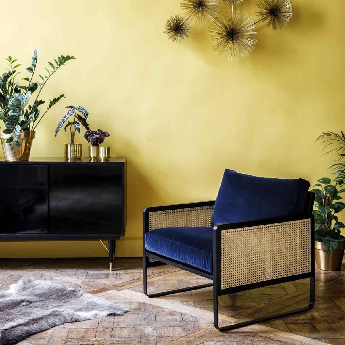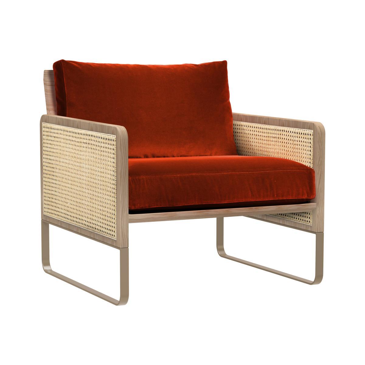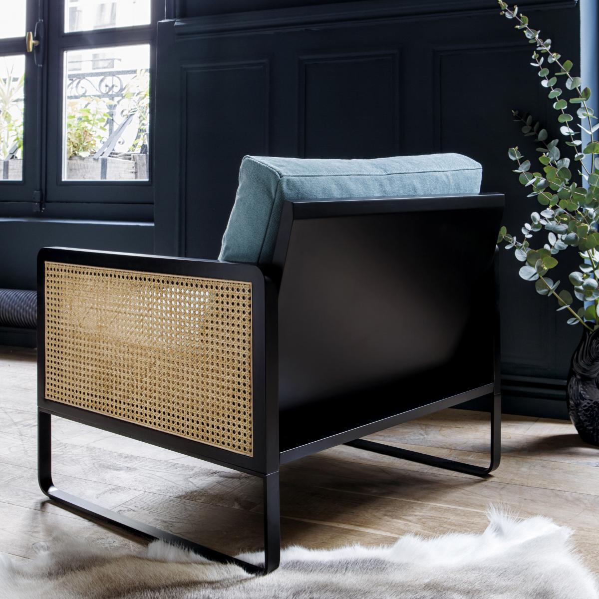 Fifties inspiration! This top-of-the-range armchair revisits the use of cane with modernity and elegance. Refined and very chic, cane-work becomes the star of your decoration. This retro-looking armchair offers a superb combination of fine materials. The refined structure in black stained beech is embellished on the sides with natural rattan cane panels. As an extension of the structure, the base is in black lacquered steel. The generously padded seat is upholstered in luxurious velvet. Mixing influences, the Cannage armchair is a clever mix of vintage inspiration and contemporary lines. Very sophisticated, this armchair reflects the French way of life cultivated by Parisian brand Red Edition. It blends in with all styles, creating a soft, cosy, glamorous and inspiring feel. Parisian brand Red Edition invites you to rediscover the French way of life with modern design codes. Its recipe: a Parisian signature, clean lines and a requirement for noble materials.
