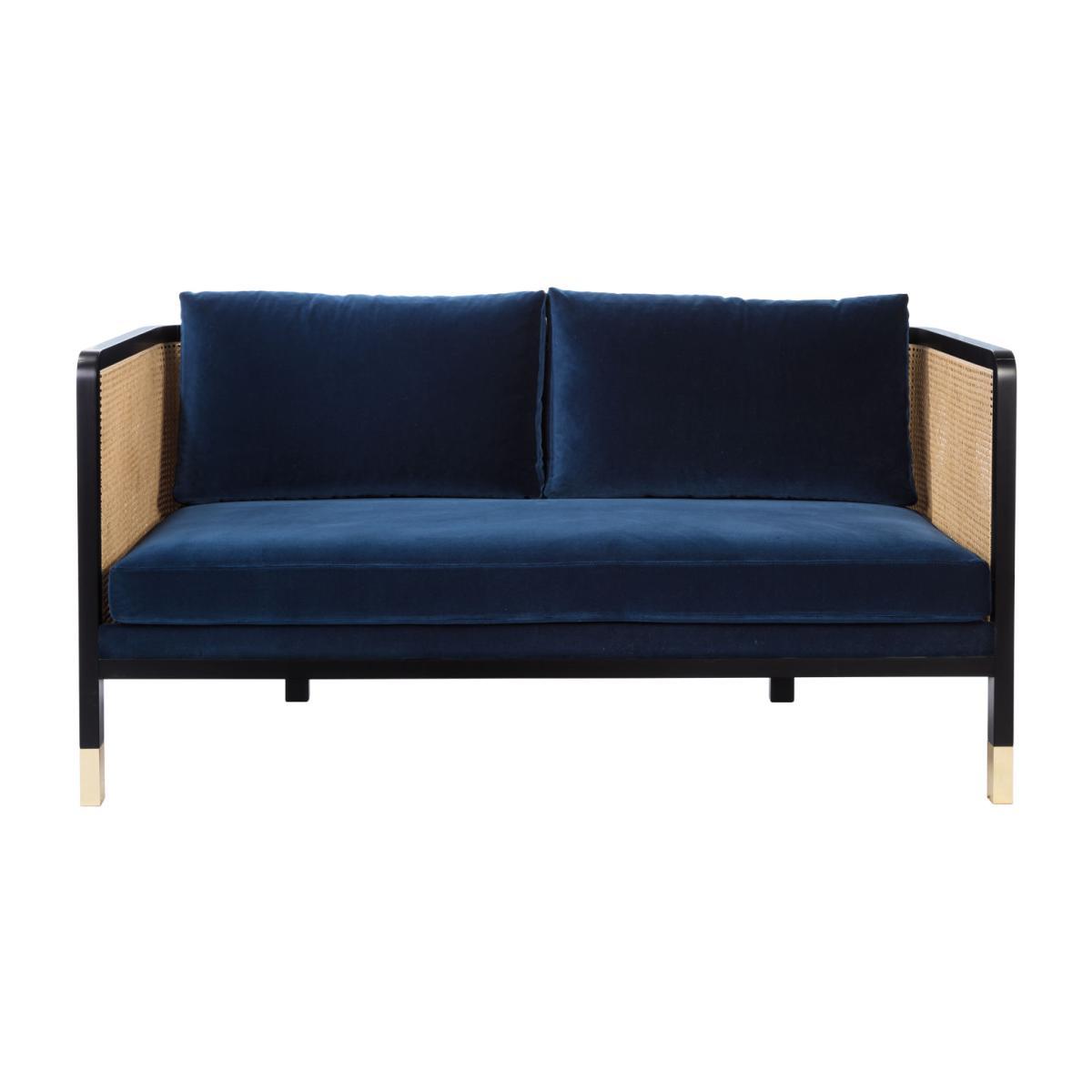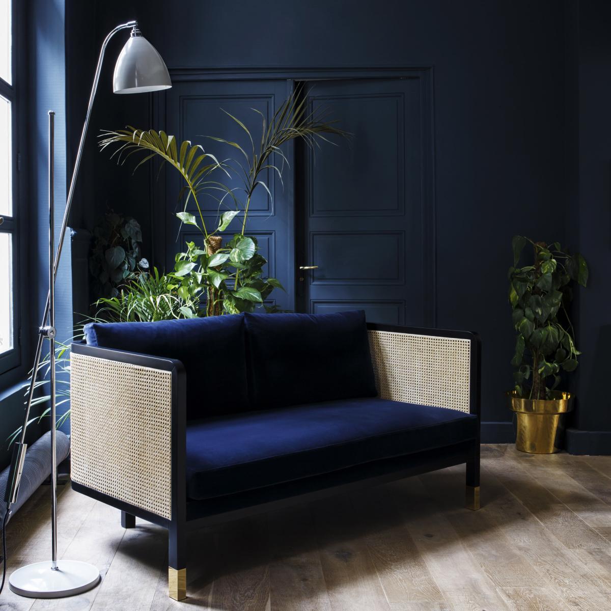 Fifties inspiration! This top-of-the-range sofa revisits the use of cane-work with modernity and elegance. Refined and very chic, cane-work becomes the star of your decoration. This retro-looking sofa offers a superb combination of fine materials. The natural rattan cane structure is surrounded by a black stained beech frame. The black wood draws the lines and contours graphically while the cane weave plays with transparency and openwork effects for an elegant, refined result. The bottoms of the feet are in lacquered steel with a brass finish. The generously padded seat is upholstered in luxurious velvet. Mixing influences, the Cannage sofa is a clever mix of vintage inspiration and contemporary lines. Very sophisticated, the sofa reflects the French way of life cultivated by Parisian brand Red Edition. It blends in with all styles, creating a soft, cosy, glamorous and inspiring feel. Parisian brand Red Edition invites you to rediscover the French way of life with modern design codes. Its recipe: a Parisian signature, clean lines and a requirement for noble materials.