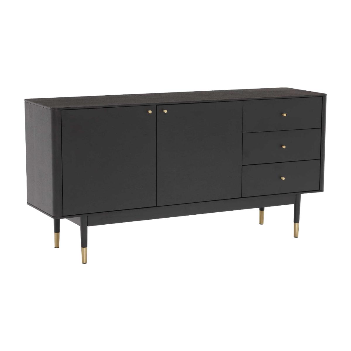 Design. Perfect for any home, the Cannelle Sideboard provides ample amounts of storage in style. With a sleek and sophisticated design, the chic Cannelle has a gorgeous, black ash veneer that beautifully contrasts with its brushed gold handles and leg caps. Featuring two roomy cupboards and three handy, sliding drawers, the Cannelle offers plenty of room for storing away both large and small dining essentials.