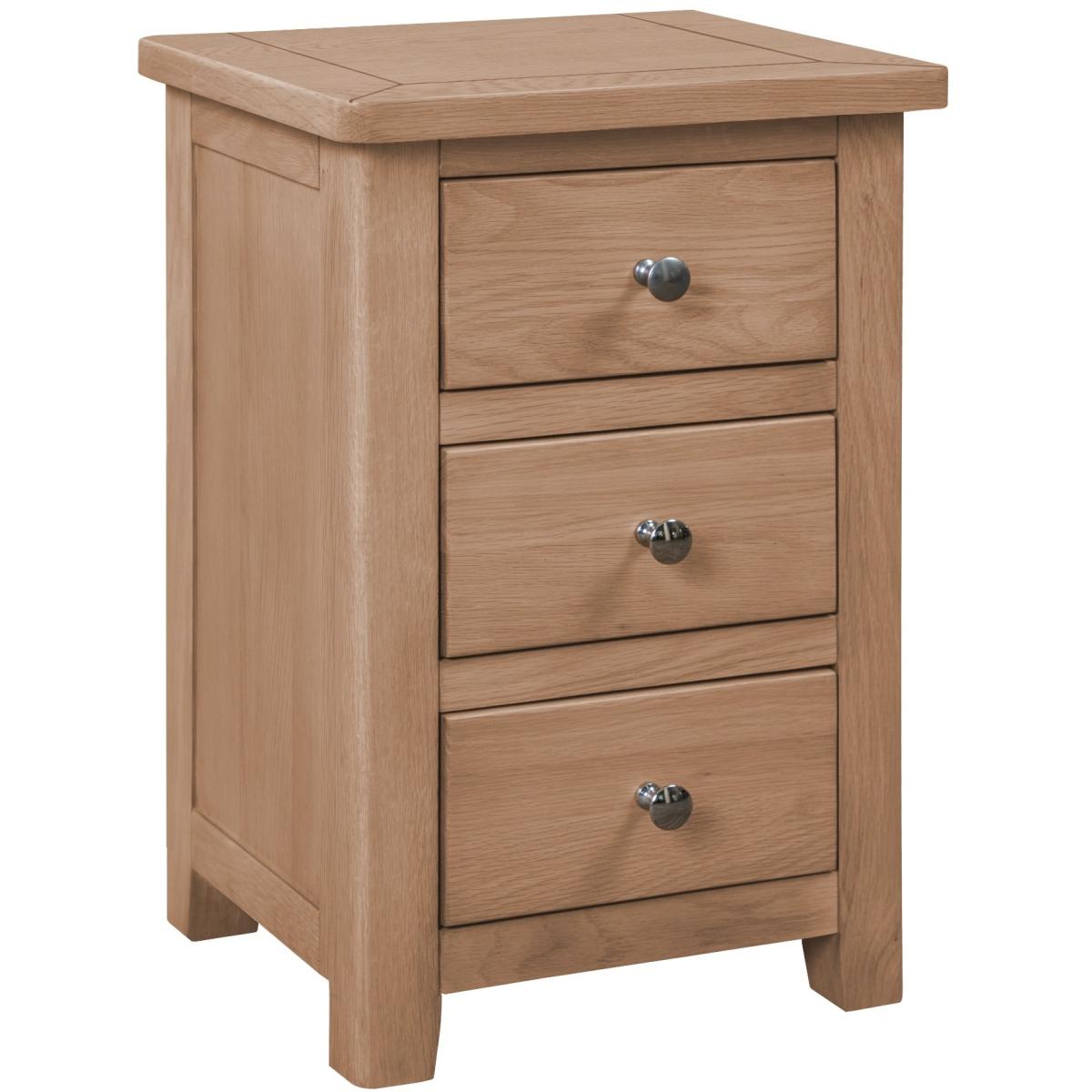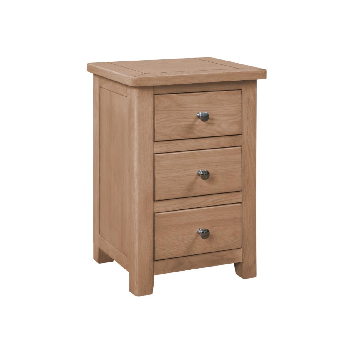 The Cannes 3 Drawer Bedside Cabinet in Oak is a stylish and practical addition to any bedroom. Part of the elegant Cannes furniture range, this piece showcases a clean and fresh design with an all-over oak finish, perfectly complementing both modern and traditional interiors. Built to last, the cabinet features a sturdy pine framework and durable MDF tops, panels, and drawers. Chrome-look hinges and a neat, round handle provide the perfect finishing touches to this beautifully crafted piece. With three compact drawers, this bedside cabinet offers the ideal storage solution for your nighttime essentials, keeping everything within easy reach. Delivered fully assembled, it’s ready to place and enjoy straight out of the box. Features: MDF and Pine Material Oak Finish 3 Drawer Metal Knob Handle Also Matching Furniture Available Delivered fully assembled Dimensions: Height: 60cm Width: 40cm Depth: 35cm Net Product Weight 11 kg Combining timeless style with everyday practicality, the Cannes 3 Drawer Bedside Cabinet is the perfect fit for your bedroom. Please note All screens vary in colour reproduction and whilst every effort has been made to display the colour as accurately as possible it is for guidance only.