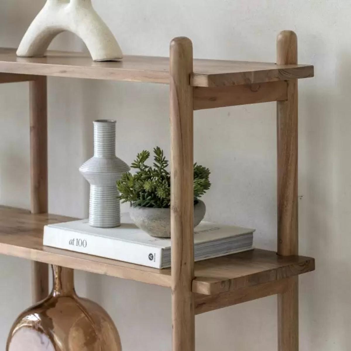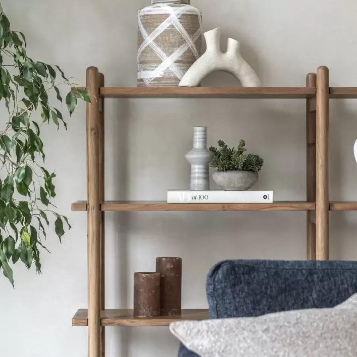 With an open design, this display unit is perfect for showing off your book collection and favourite artistic pieces. Made from rich Acacia wood the wide 4 shelf unit has a clear vintage design influence with its slim shelves and rounded uprights, making it perfect for modern eclectic interiors. Coordinating pieces also available.