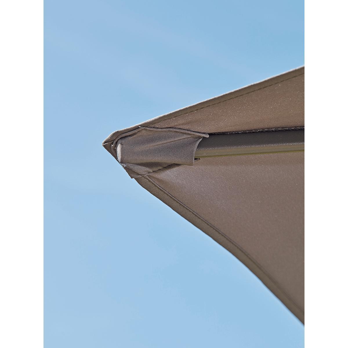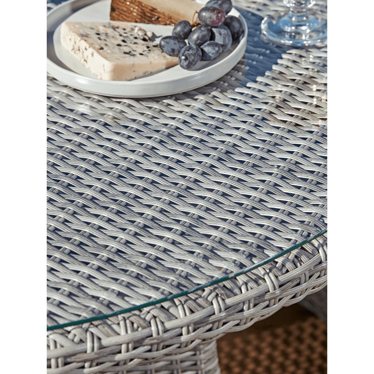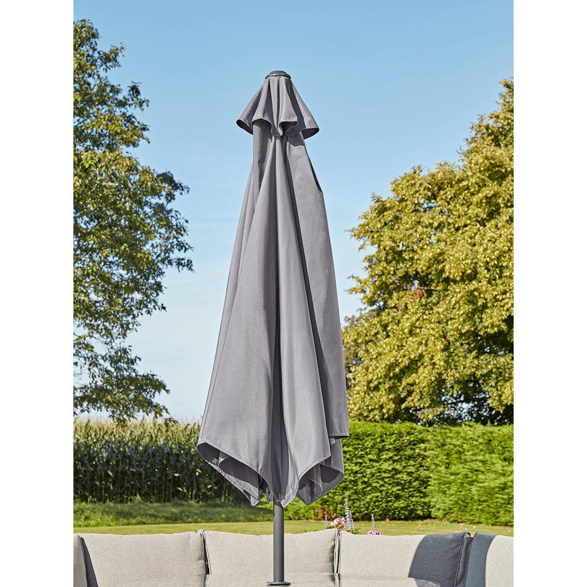 Crafted from waterproof wicker with a strong aluminium frame, our elegant but durable dining set is perfect for family dining on the terrace or patio. Both sofas, each with three cushioned back rests are shaped about the central table with two curved benches to create a sociable spot in which to relax outdoors, and a crank mechanism vented parasol offers your company shade from the sun. Consisting of a parasol, shaped glass topped table and curved seating our set comes with sumptuous cushions and various arrangement possibilities.