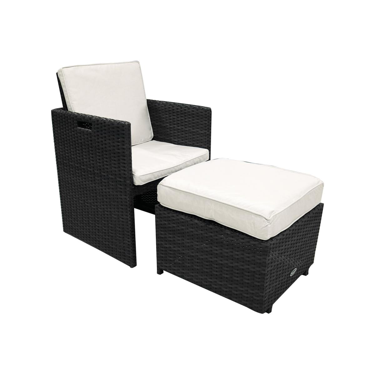CANNES Ebony Black Cube Chair with Folding Back and Footstool incl. cushions - Black