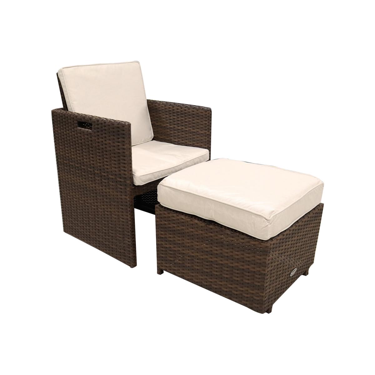 CANNES Mocha Brown Cube Chair with Folding Back and Footstool incl. cushions - Brown