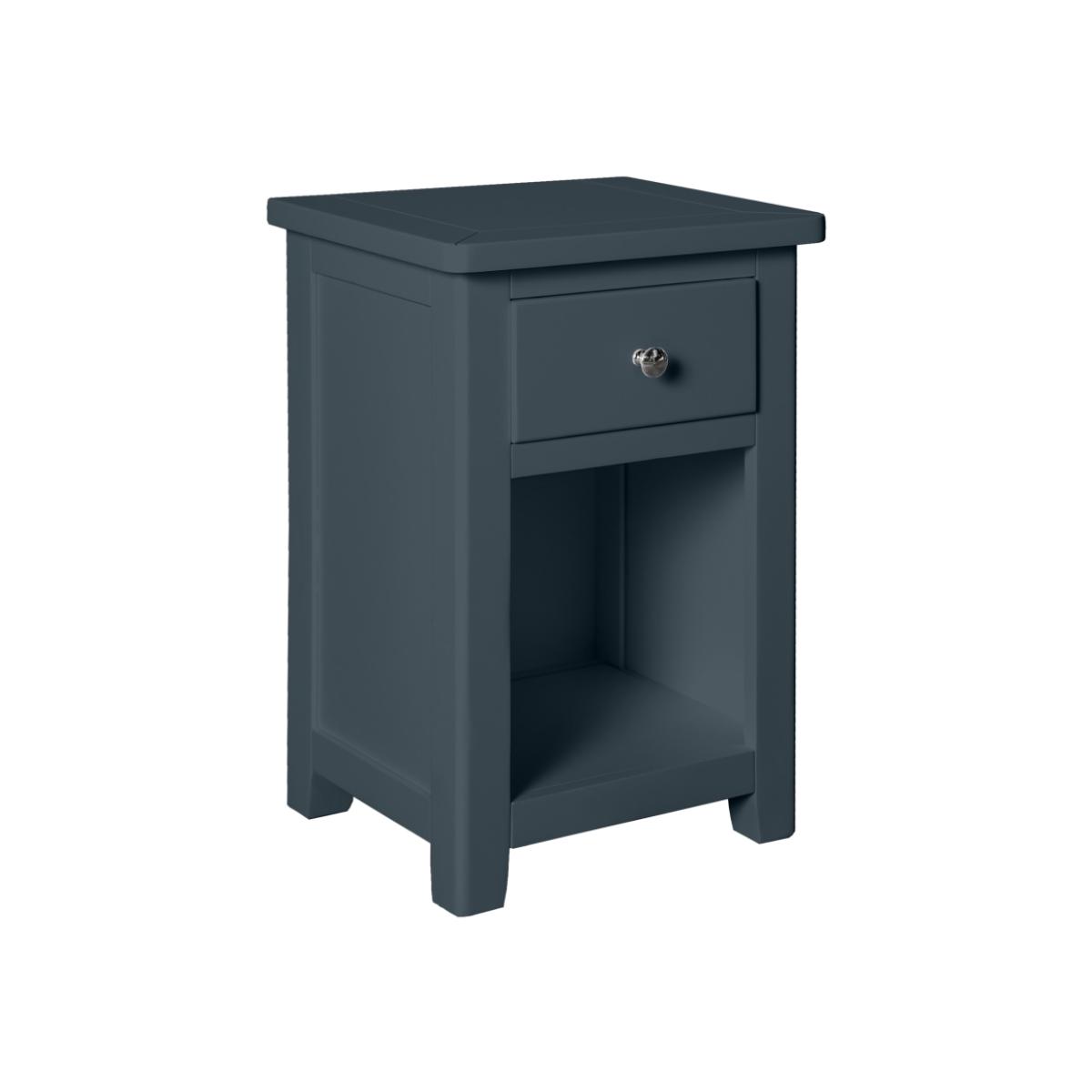 The Cannes Nightstand - Painted Blue adds a vibrant pop of colour and contemporary style to your bedroom. Finished in a bold painted blue, this nightstand offers a striking contrast to neutral tones and brings a fresh, modern feel to any space. Its rich colour makes it a standout piece that pairs beautifully with a variety of decor styles, from coastal to modern and eclectic interiors. Crafted with both style and function in mind, the Cannes Nightstand features a spacious drawer for storing essentials like books, remotes, or personal items, along with a flat surface for a lamp, clock, or other bedside necessities. The clean lines and sturdy construction ensure it stands the test of time, while the painted finish adds a touch of personality and charm. Whether you’re looking to add a splash of colour or need a practical bedside storage solution, the Cannes Nightstand - Painted Blue offers a perfect balance of design and utility for your bedroom. Features: MDF and Pine Material Painted Blue Finish 1 Drawer Metal Knob Handle Also Matching Furniture Available Delivered Assembled Dimensions: Height 59.5cm Width 40cm Depth 35cm All screens vary in colour reproduction and whilst every effort has been made to display the colour as accurately as possible it is for guidance only.