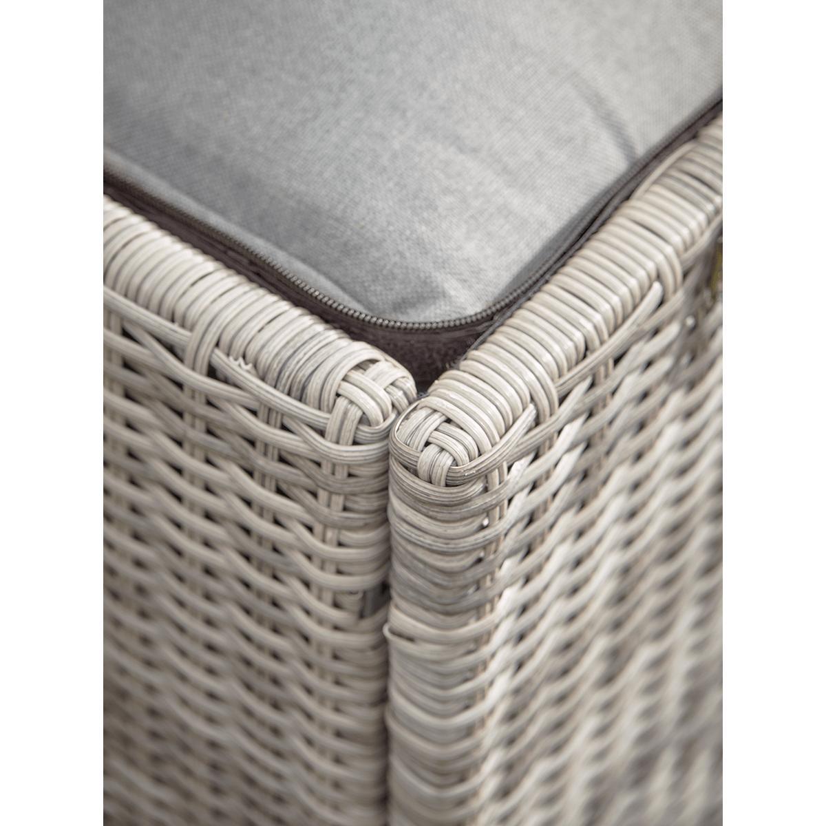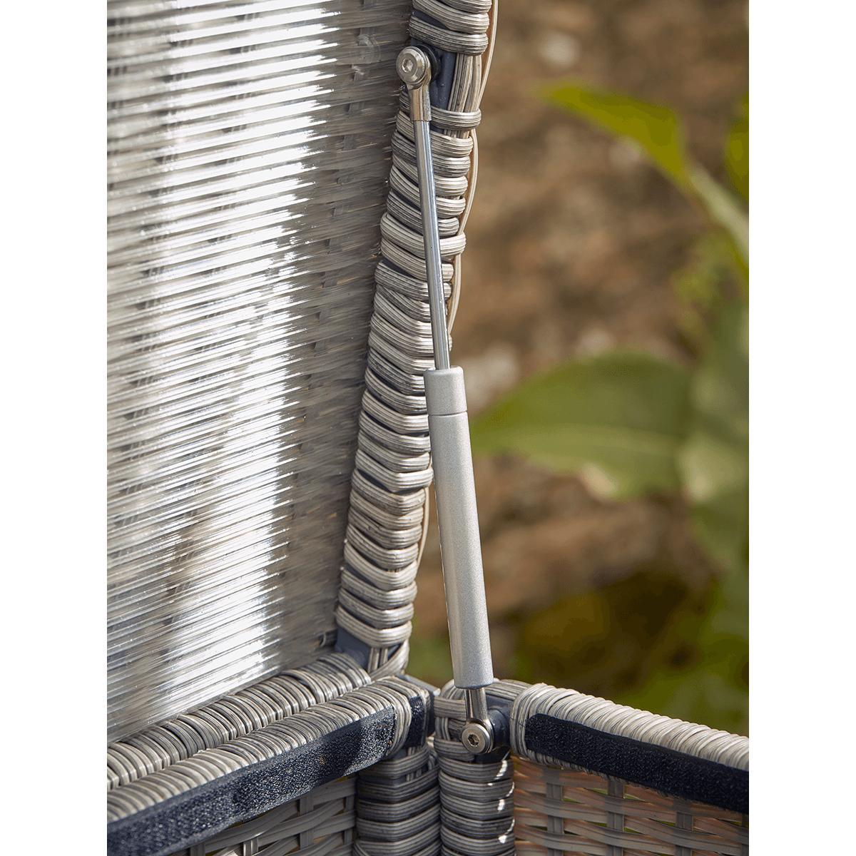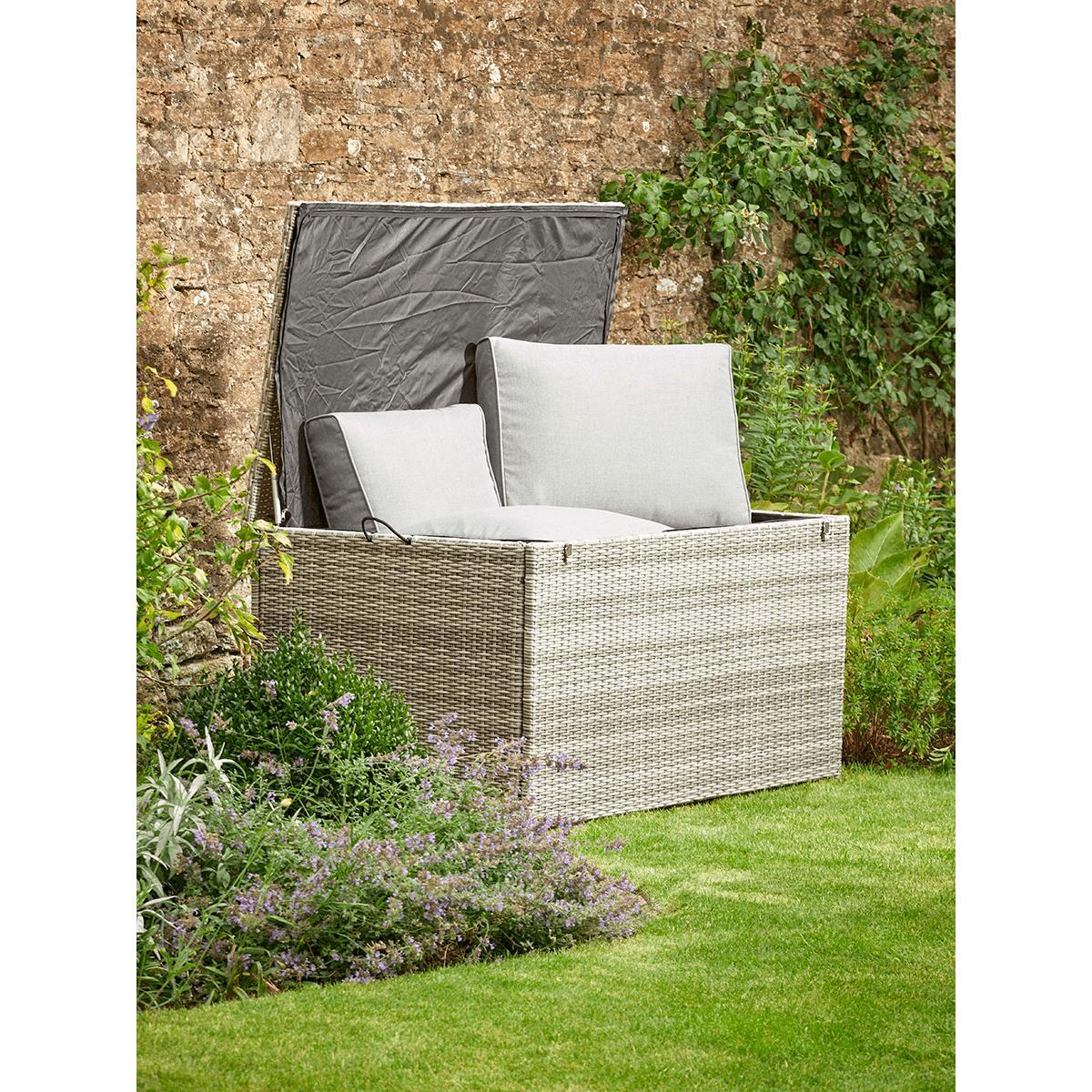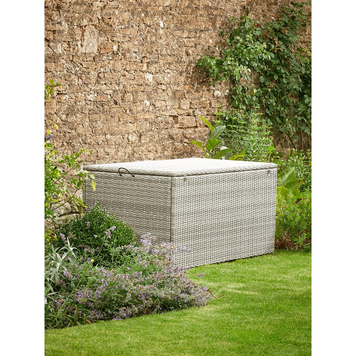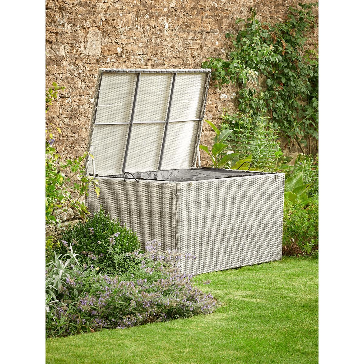 Made from woven treated rattan with a light but durable aluminium frame, our handy storage box make an attractive solution for your garden essentials. With a capacity large enough to store everything from seat cushions to blankets, it has a waterproof inner to protect whatever you choose to stash inside. The hinged lid has a soft close for ease and convenience.