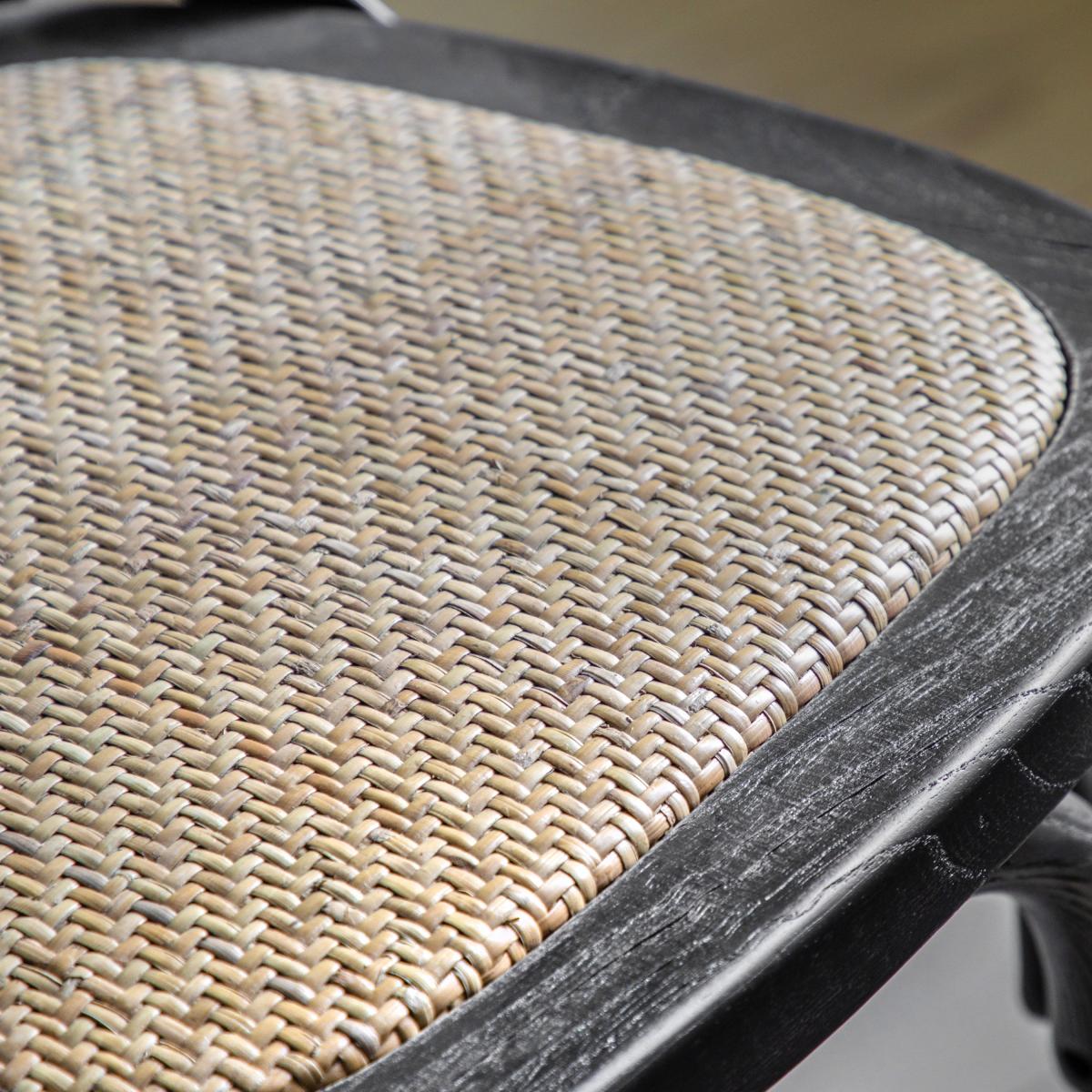 Enjoy your morning coffee and croissants as though you're in a French cafe on the streets of Paris. Each chair has a cross back and a hand woven which gives them a bistro style look.