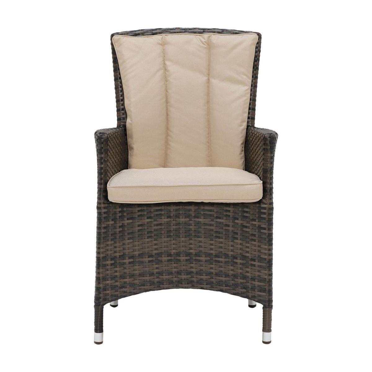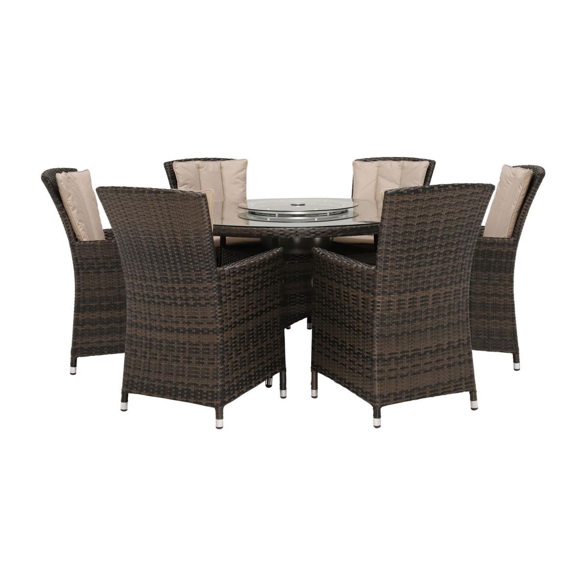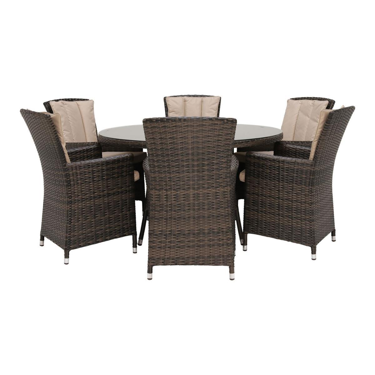 Canoga Park 6 Seat Round Garden Dining Set in Brown Weave and Beige Fabric
