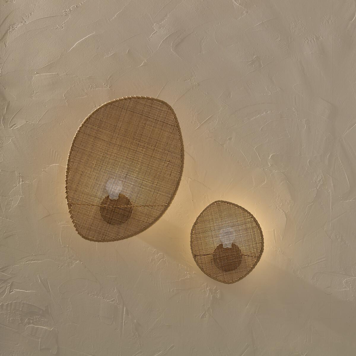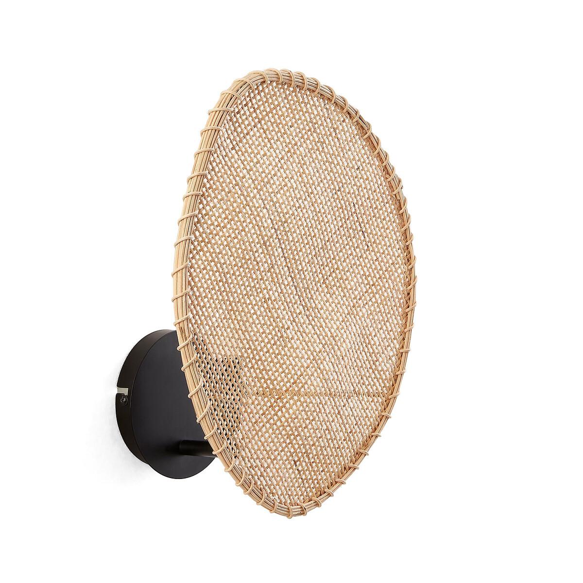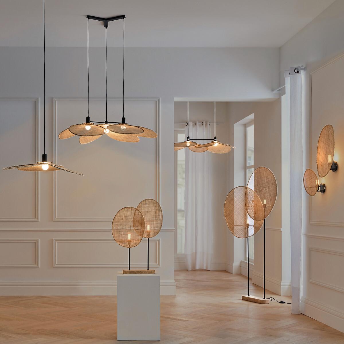 An Emmanuel Gallina exclusive for AMPM. Recalling the organic forms of foliage suspended in space, the Canopée ceiling pendant evokes a natural sense of weightlessness. Fashioned from delicate woven rattan. A desire to create a flat design for a discreet finish on walls and ceilings. This light becomes a real ornamental piece or a luminous sculptural silhouette. Product Details • Organic woven rattan panel that dims the light • Steel structure with matte black epoxy finish • Supports E14 bulb, 40W max (not supplied) • Compatible with bulbs in energy classes A-EDimensions • L26 x H32 x D14.5cm. Dimensions and weight of parcel • 34 x 28 x 14.5cm • 0.35kg