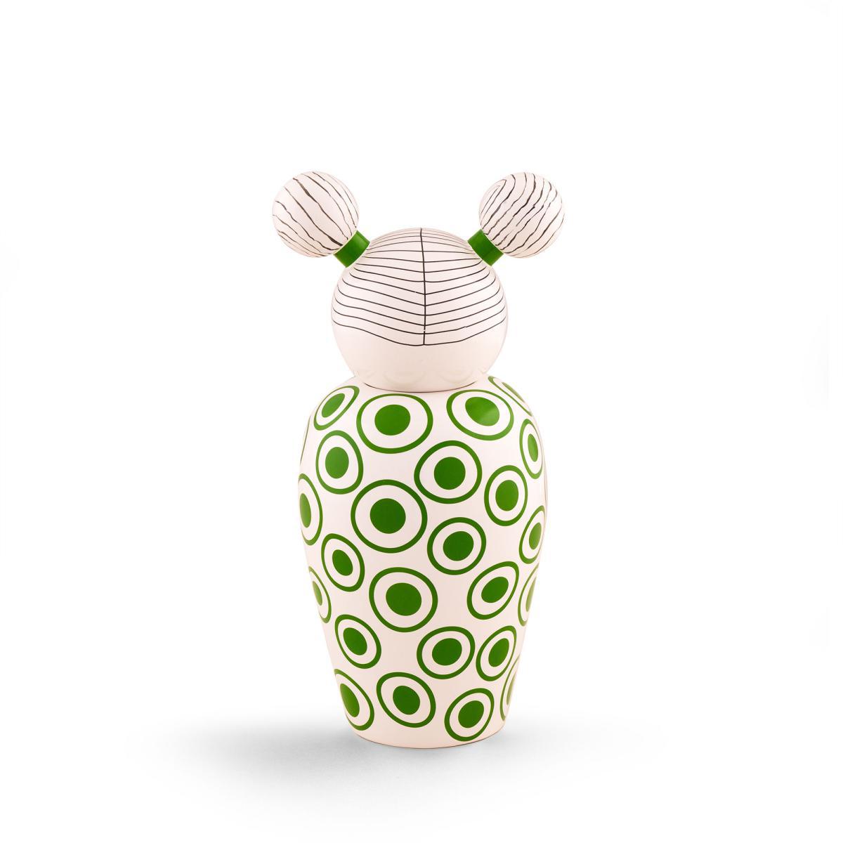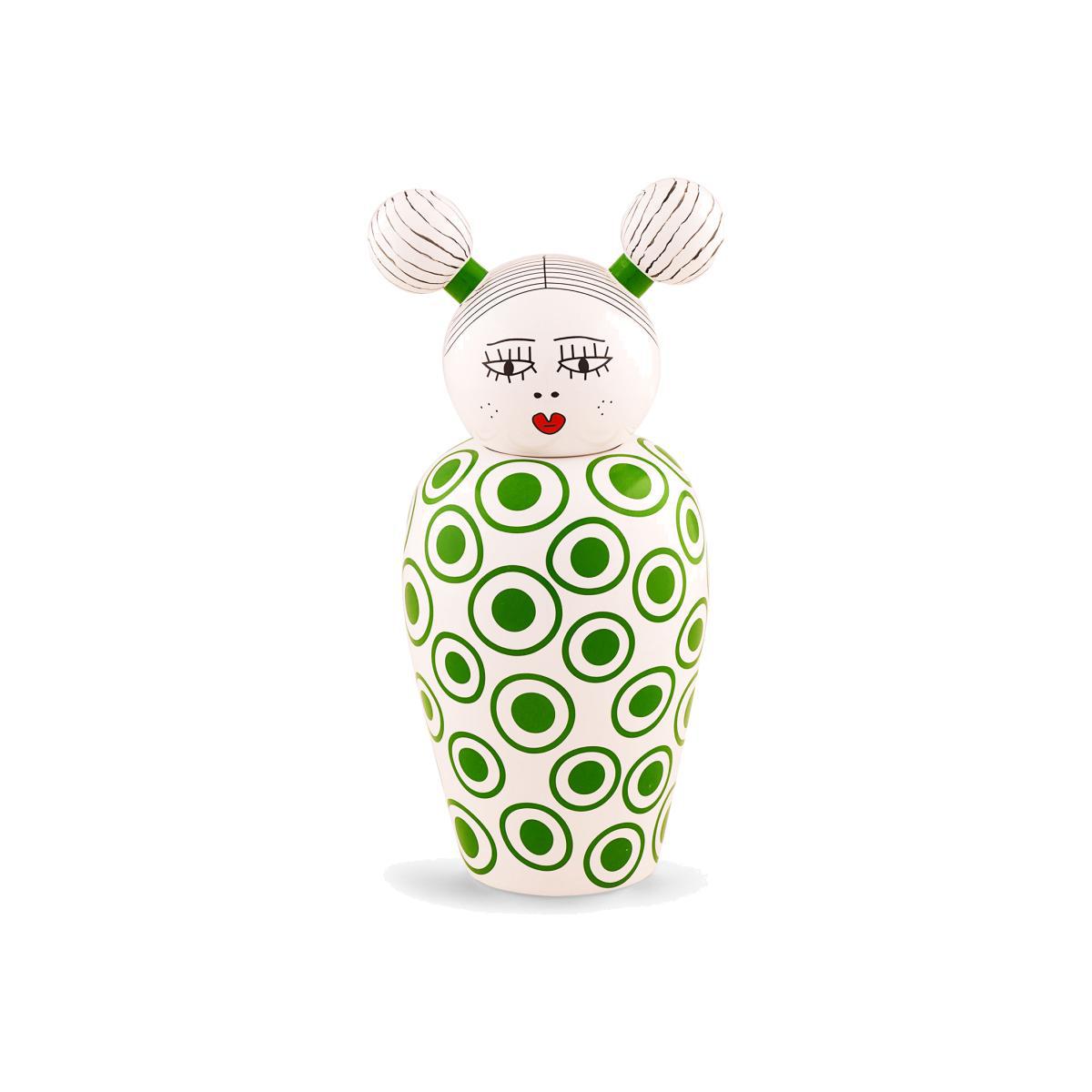 Colourful and cheerful, these vases are as functional as they are decorative. Canopie is a collection of porcelain vases made by designer Elena Cutolo. Each vase represents a young girl from a different origin: Pepa from America, Lula from Oceania, Rosio from Africa, Izumi from Asia and Zoe from Europe. To tell them apart, these vases sport different colours and patterns, faces with distinct expressions, as well as a different hairstyle. Each has its own personality! When she designed the Canopie vases, Elena Cutolo imagined an encounter between five friends who wanted to share a friendly moment together in diverse cultural contexts. In this world that has become completely virtual, where touch screens are king, these young girls therefore prefer to share their different values, habits and customs. They also each take gifts from their continent for the others to discover. When you’re not using them, your vase with its lid is a beautiful decorative item. With its generous size, this vase can also act as storage and accommodates various objects in its belly.