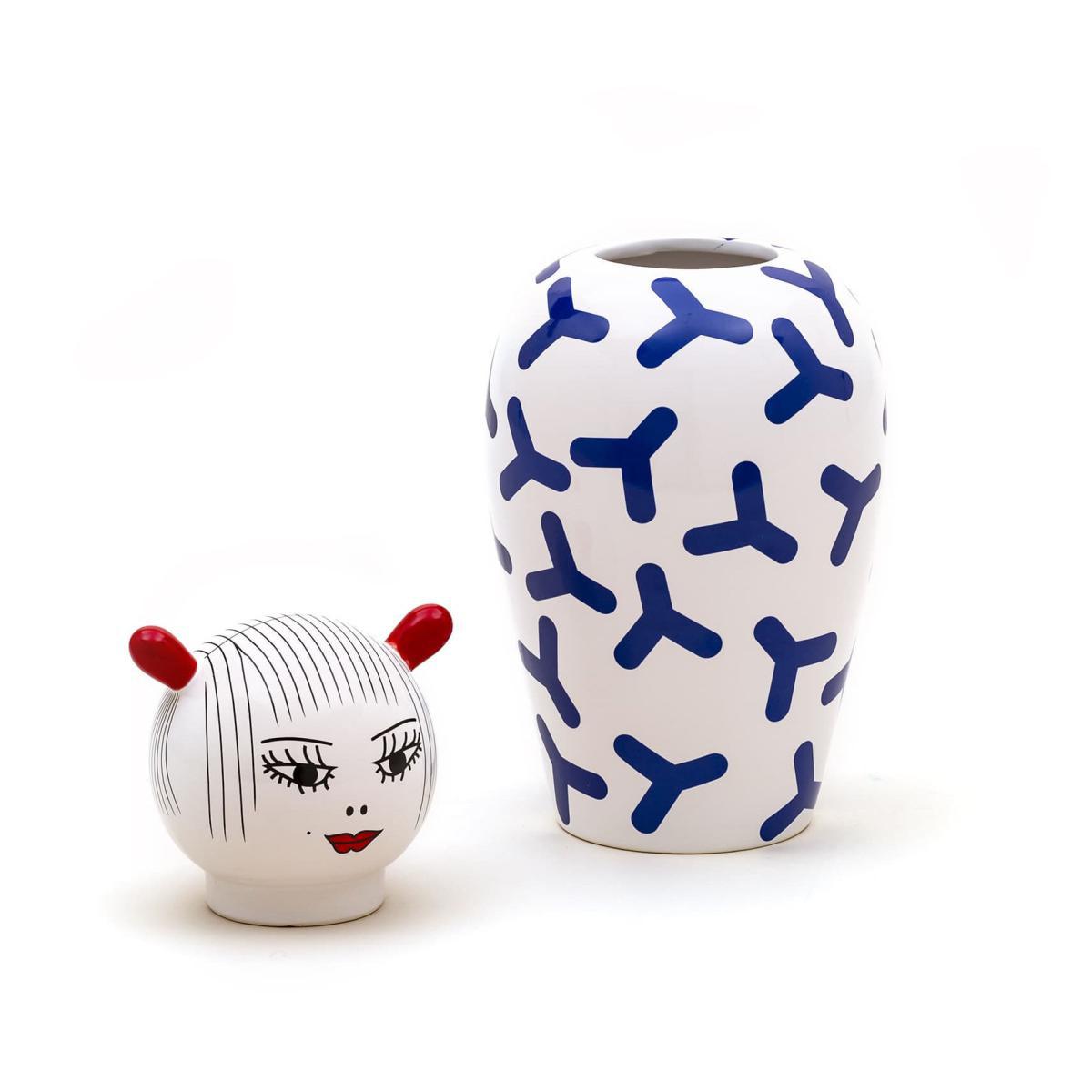 Canopie Zoé Vase - / with lid by Seletti White/Blue