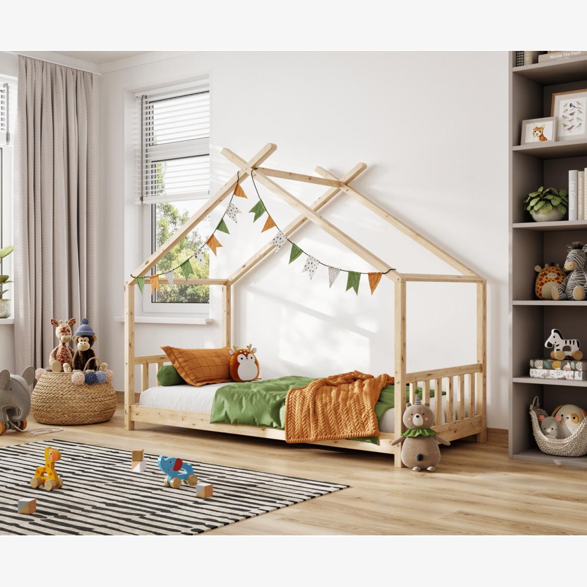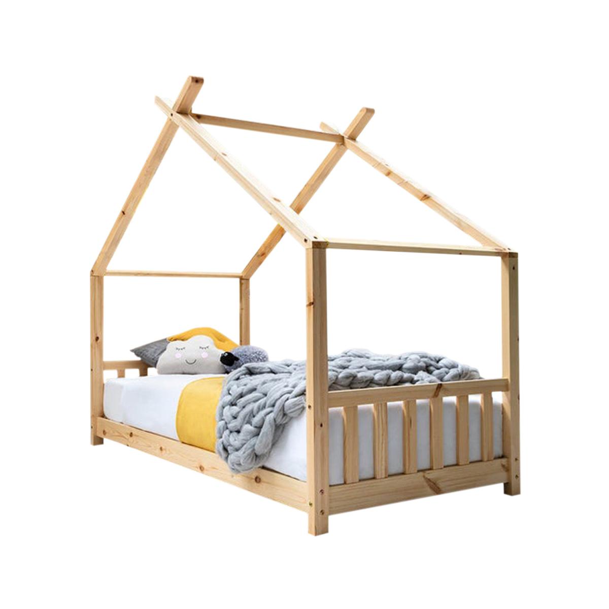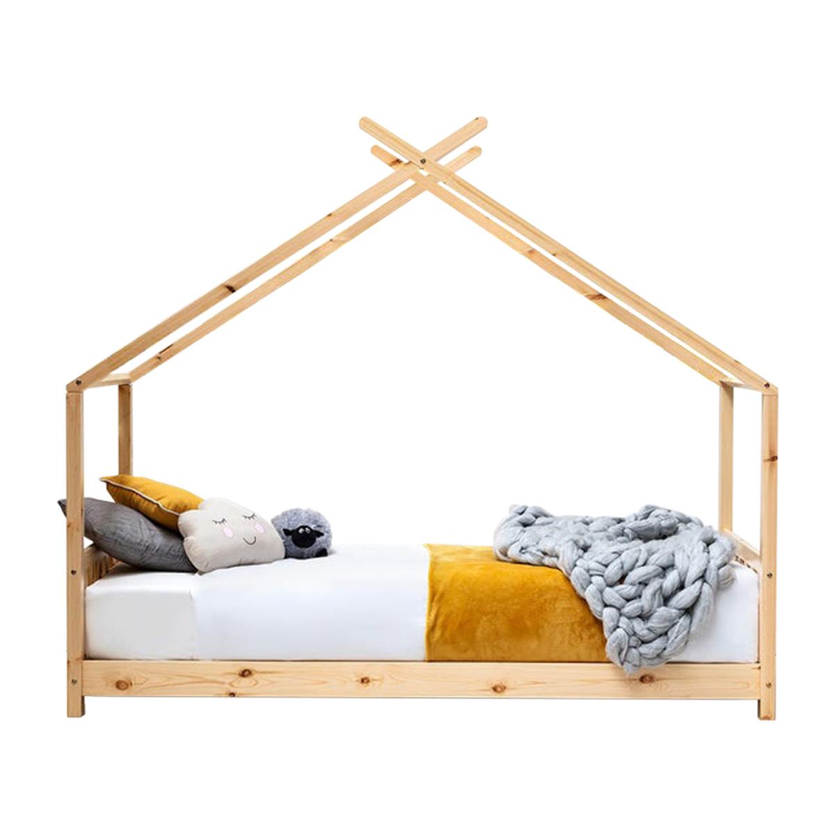 The Flair Canopy House Bed frame can be transformed into a fabulous, fun space for your little one. The crossover frame is perfect for accessorising with foliage, lights, bunting and drapes to create the perfect cosy hideaway!Designed to be low to the floor, this bed is the ideal first bed and is available in a stylish, clean white finish or a natural lacquered pine finish. The Canopy House Bed is constructed from sturdy pine with a robust wooden slatted base and requires a UK Standard Single size mattress.