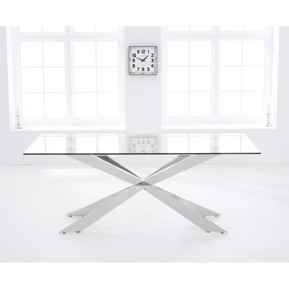 Canova 200cm Glass Dining Table with 8 Black Marco Chairs