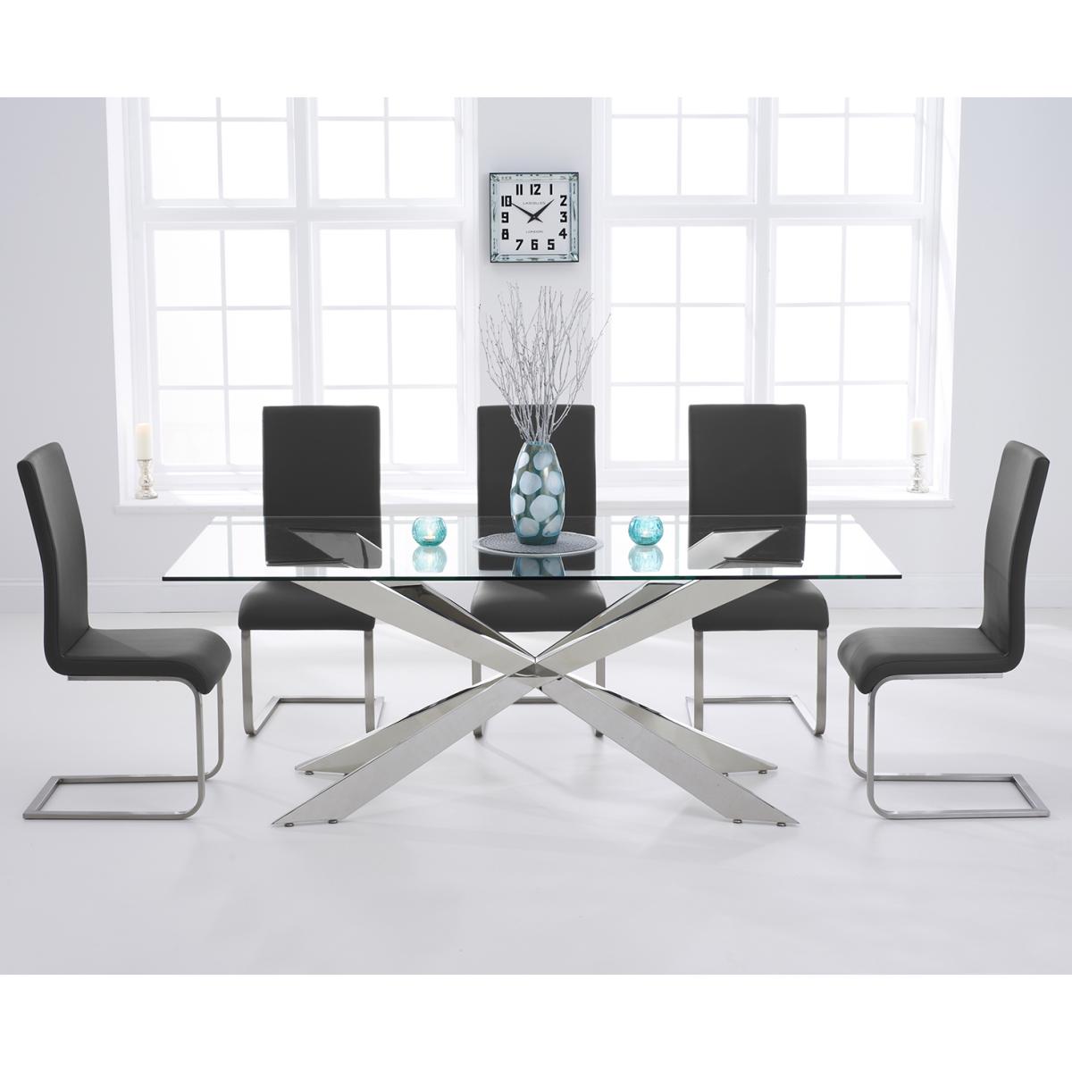 Canova 200cm Glass Dining Table with 8 Grey Austin Chairs