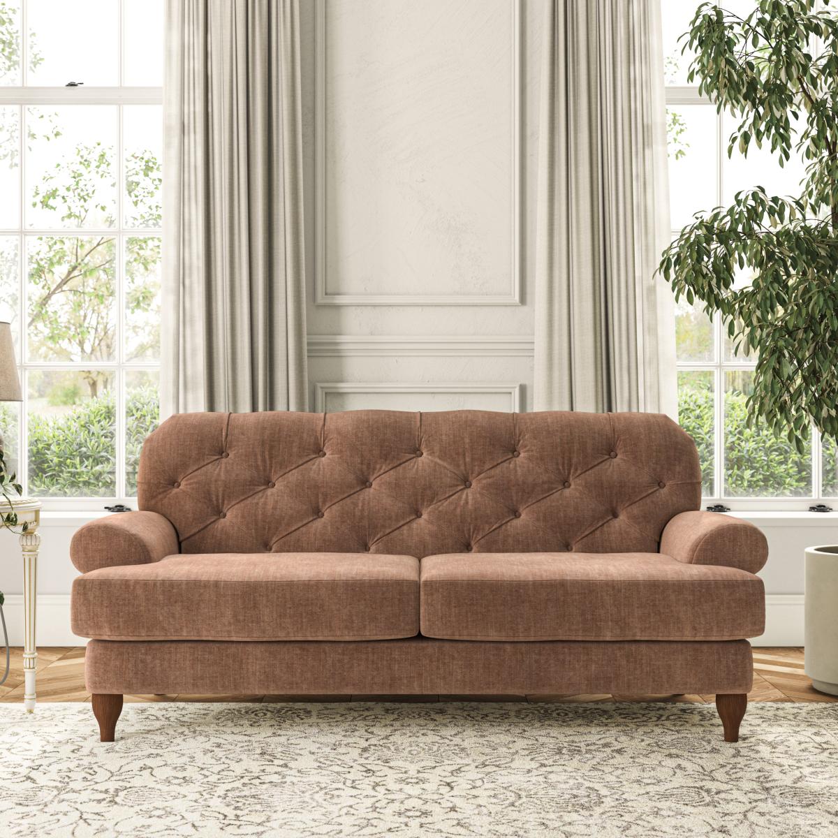 * Chesterfield style * Deep button detail * Scroll arms * Serpentine seat springs * Choose your support, fabric and leg colour This sofa boasts a high, supportive back and elegant compact scroll arms, providing both style and comfort. The serpentine seat springs and superloop sprung back ensure lasting durability and support. Choose between a low-maintenance foam seat or the inviting ‘Qualofill Blue’ fibre seat, crafted from 100% recycled polyester. The ‘T’ cushion seat and arm design offer a compact and contemporary look, enhanced by self-sewn seat cushions. Available as a right or left-handed corner group, this sofa also features ‘hour glass’ shaped turned hardwood legs in two finishes, which are easy to fit. Made to order, this sofa can be tailored to your exact preferences, offering a wide selection of colours, fabrics, foot types, and fillings for a truly personalised and comfortable piece.