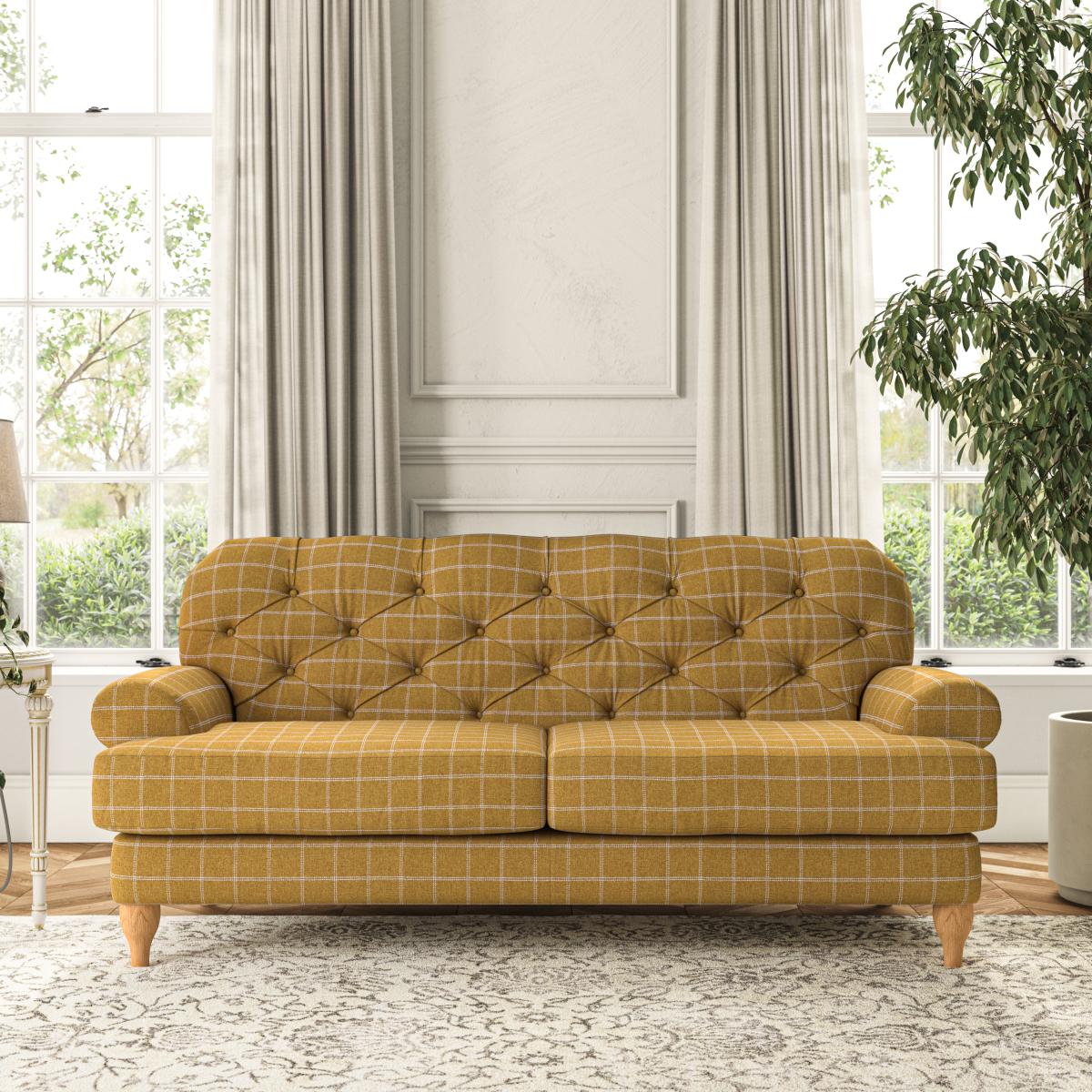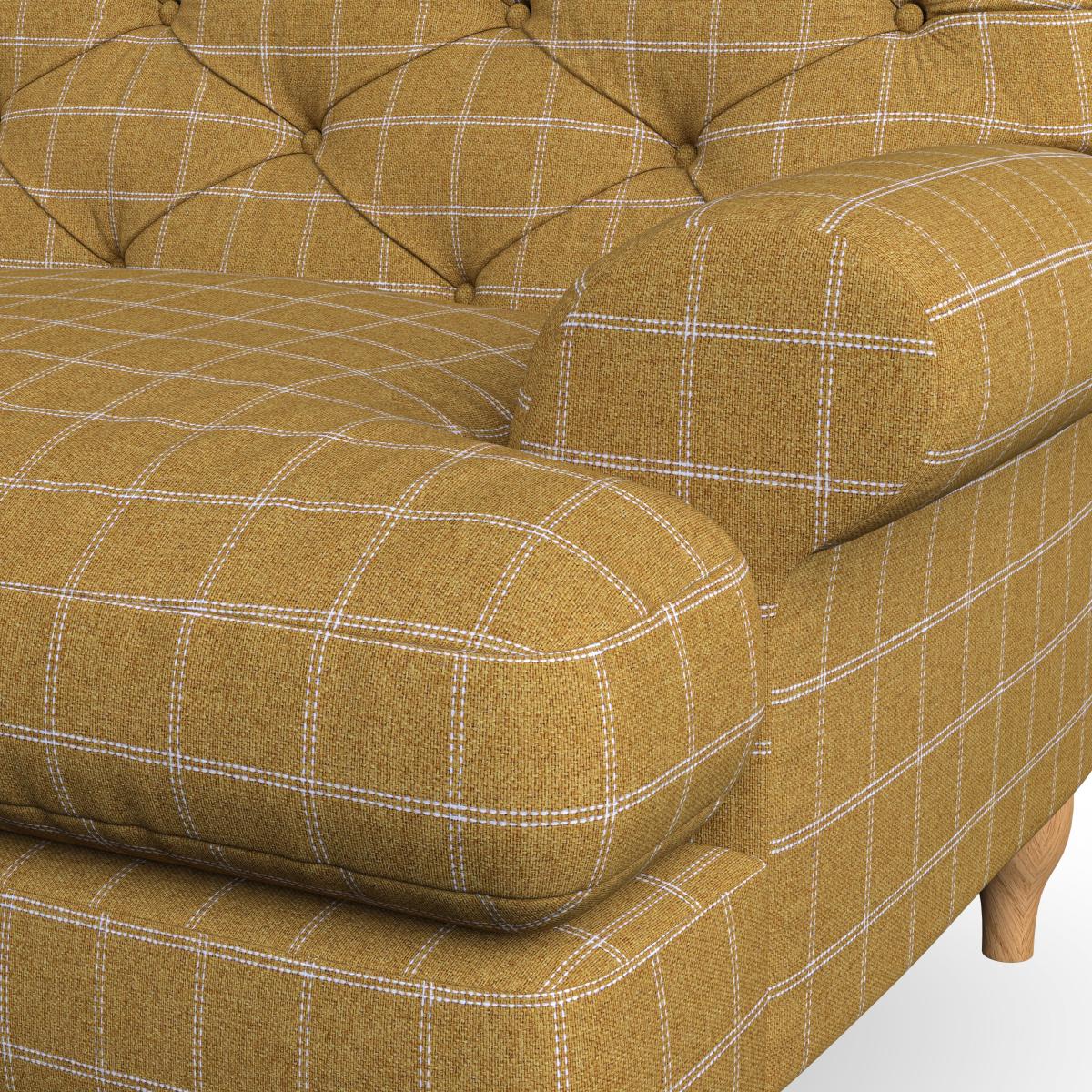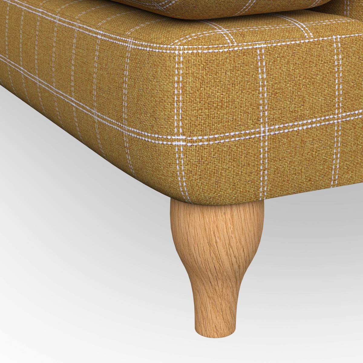 * Chesterfield style * Deep button detail * Scroll arms * Serpentine seat springs * Choose your support, fabric and leg colour This sofa boasts a high, supportive back and elegant compact scroll arms, providing both style and comfort. The serpentine seat springs and superloop sprung back ensure lasting durability and support. Choose between a low-maintenance foam seat or the inviting ‘Qualofill Blue’ fibre seat, crafted from 100% recycled polyester. The ‘T’ cushion seat and arm design offer a compact and contemporary look, enhanced by self-sewn seat cushions. Available as a right or left-handed corner group, this sofa also features ‘hour glass’ shaped turned hardwood legs in two finishes, which are easy to fit. Made to order, this sofa can be tailored to your exact preferences, offering a wide selection of colours, fabrics, foot types, and fillings for a truly personalised and comfortable piece.
