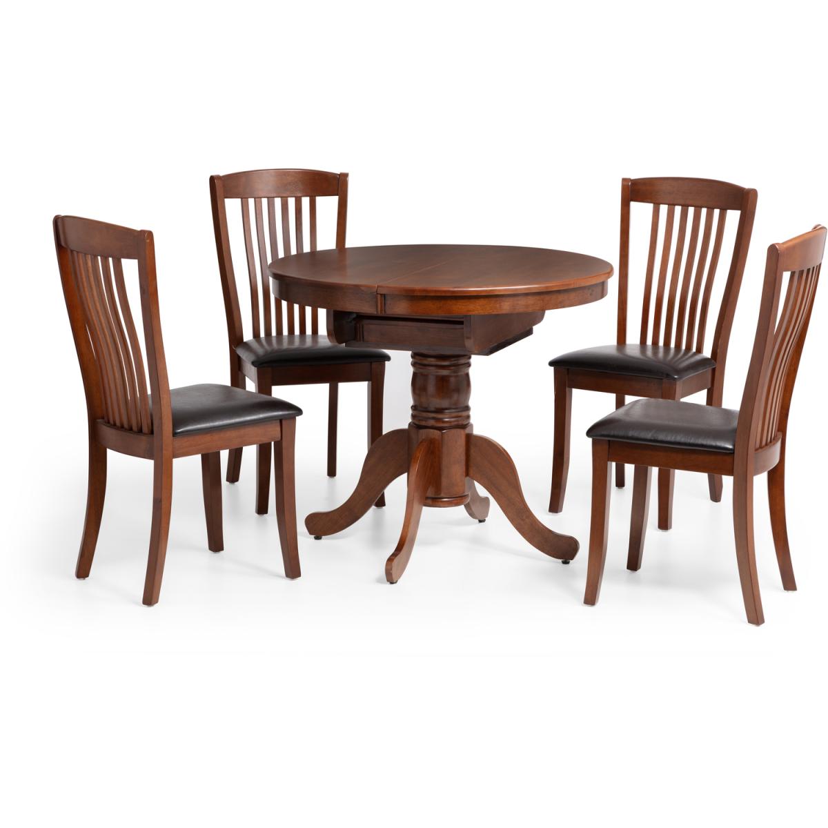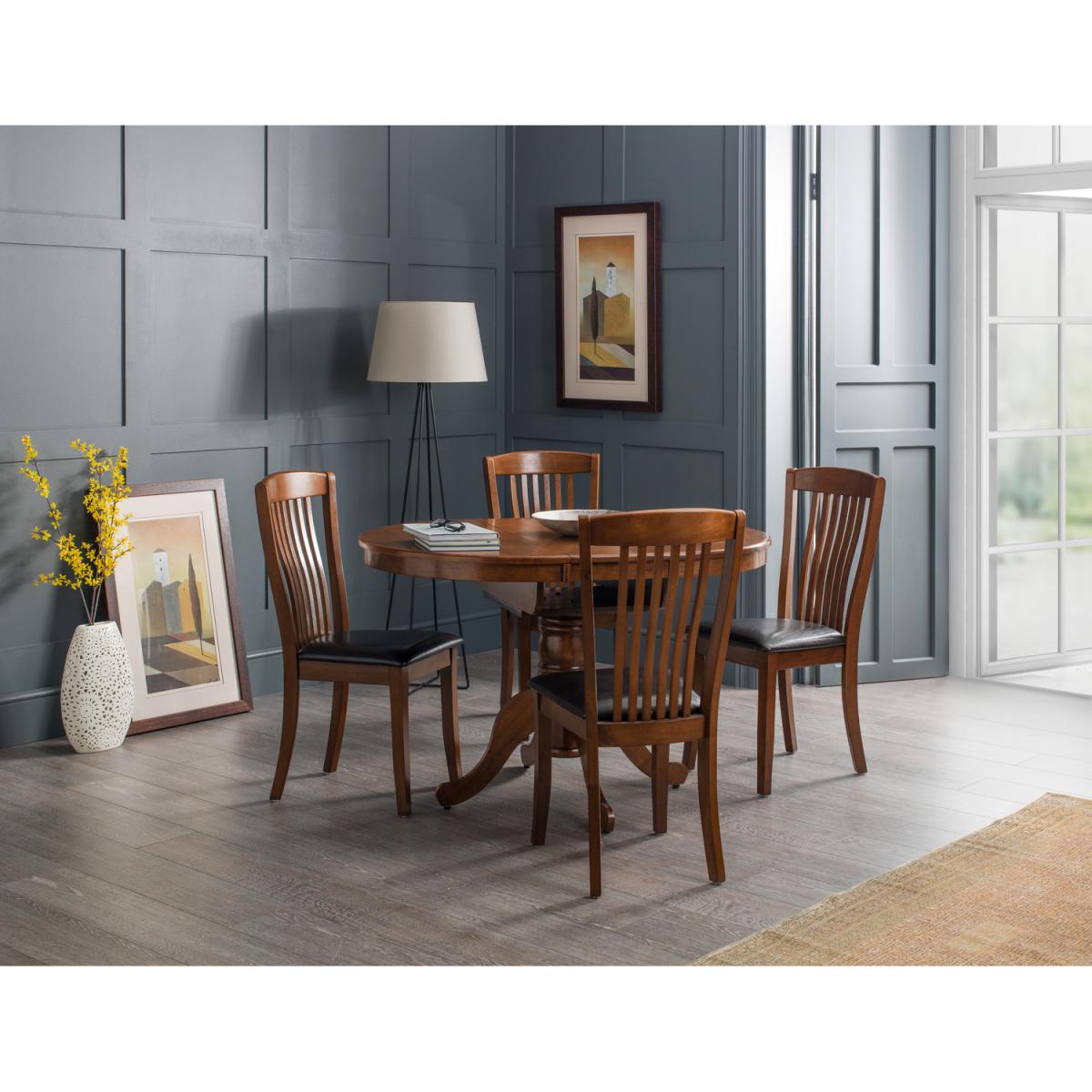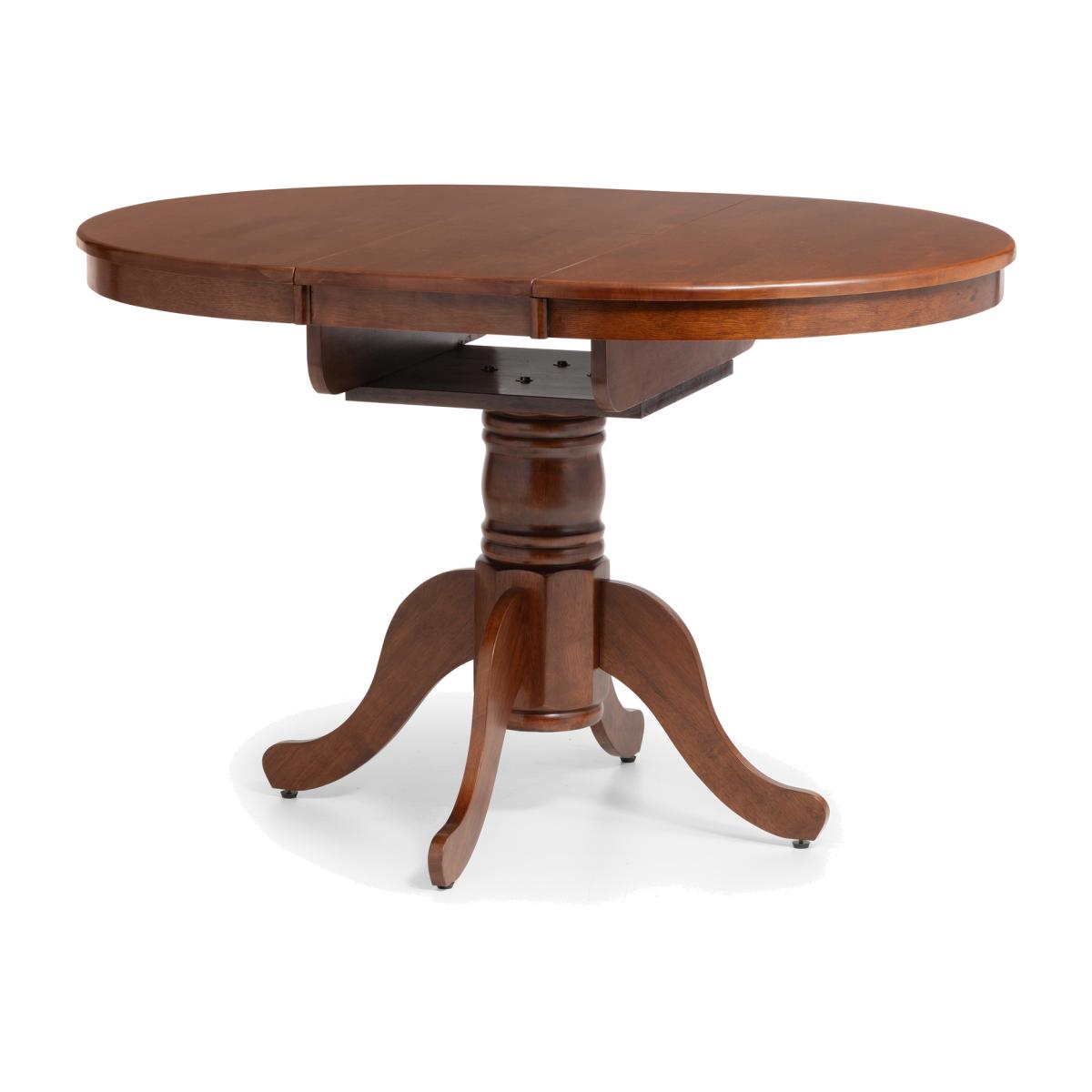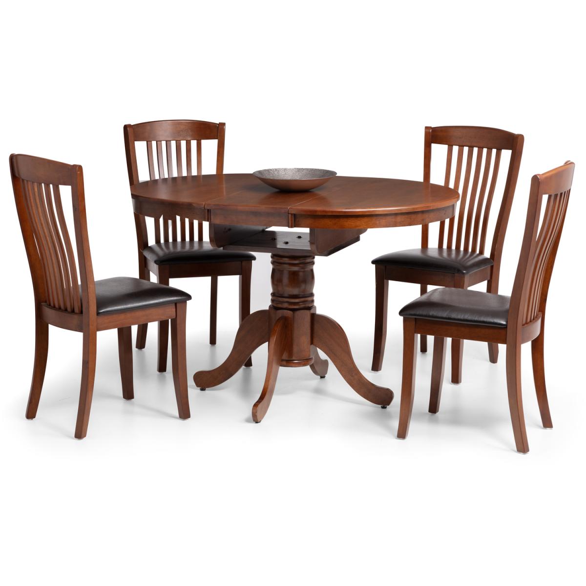This Canterbury table brings a touch of elegance to any room, with its stylish pedestal base. Finished in a mahogany colour, this Canterbury table offers space-saving practicality, extending to an oval table with can fit six people with an easy-to-use butterfly mechanism. Constructed from Solid Malaysian Hardwood, this traditional design will create a statement piece in your dining area.