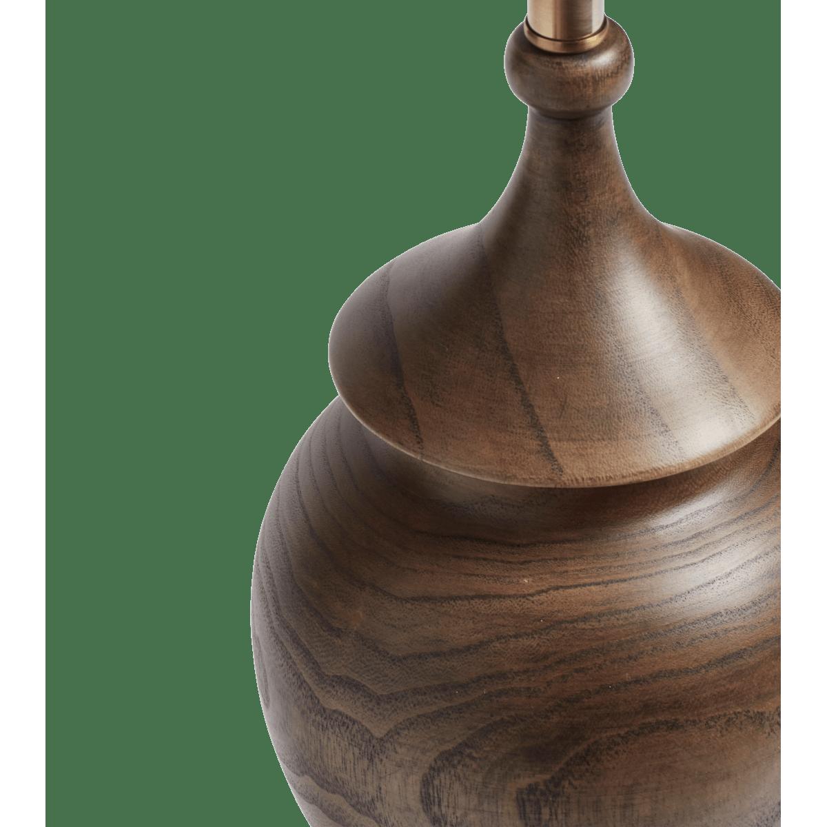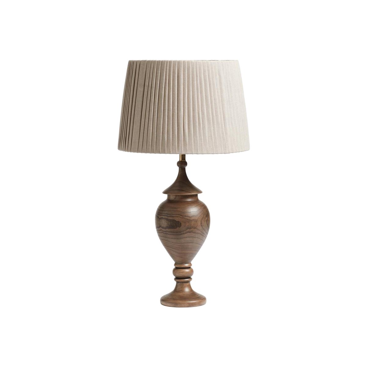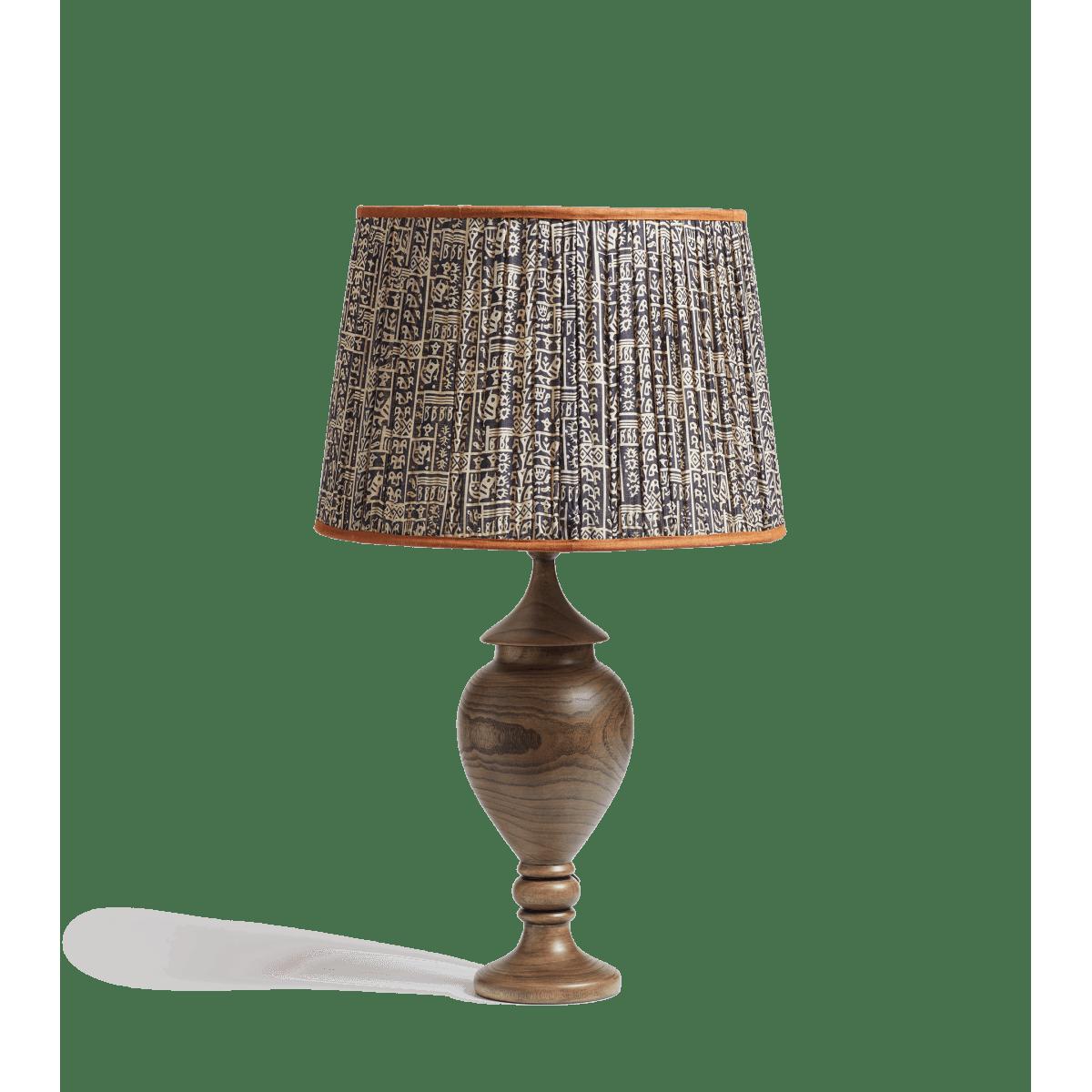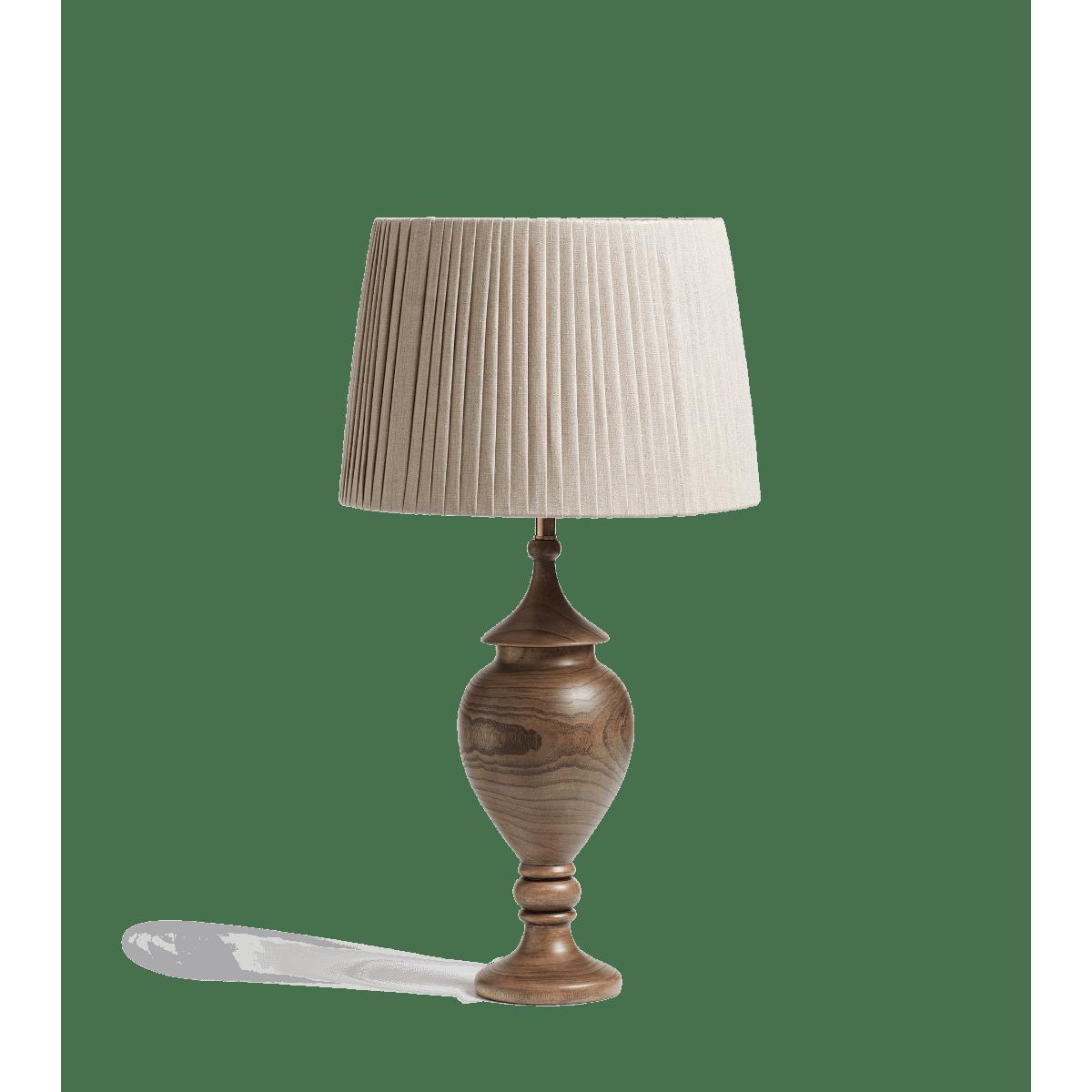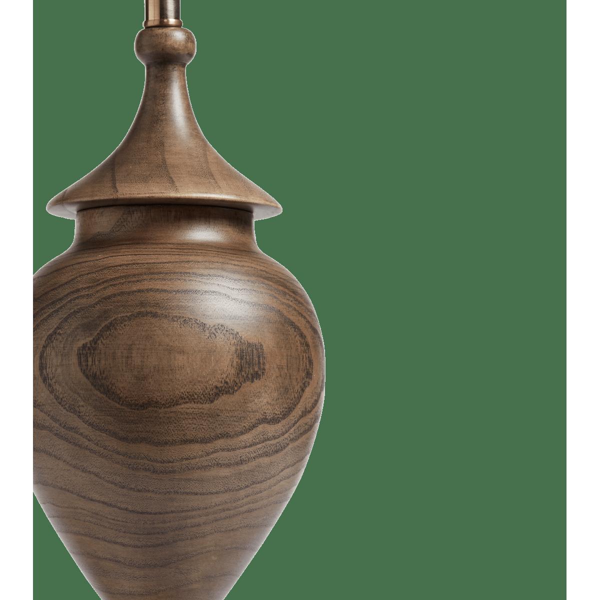 The unusual turned wood base of our Canterbury Table Lamp has the classic and noble appearance of a certain Chess piece. Its wooden form is hand painted with a natural dark wood finish.