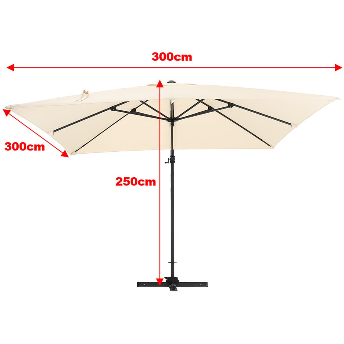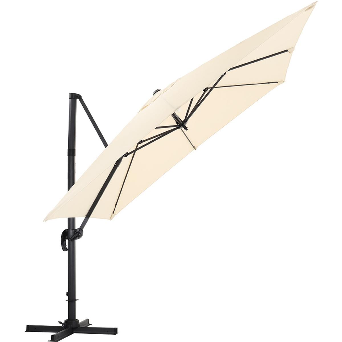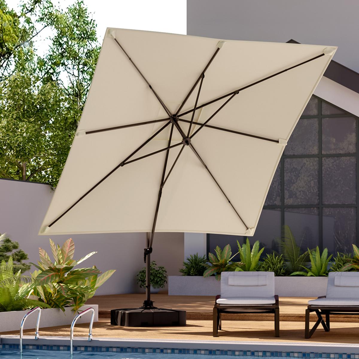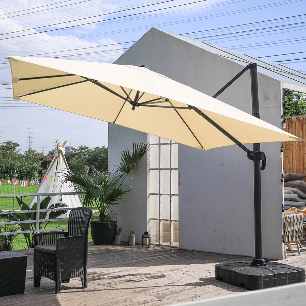 Don't let the cruel sunlight ruin the fun for you on summer days. Made of high-quality polyester, this cantilever parasol has an excellent performance in blocking the direct sun and remaining stable under strong wind. What's more, you can even adjust the angle of the canopy for thorough protection. thanks to its rotary design. The installation is quite simple to ease your burden. Finished in black, the base comes in a square shape, which is a traditional yet timeless design. Once it is filled with water and sand, it is more heavy-duty than you can think of. Made of high-quality material, it can ensure you with long service life. Besides, thanks to the HDPE, little maintenance is needed.