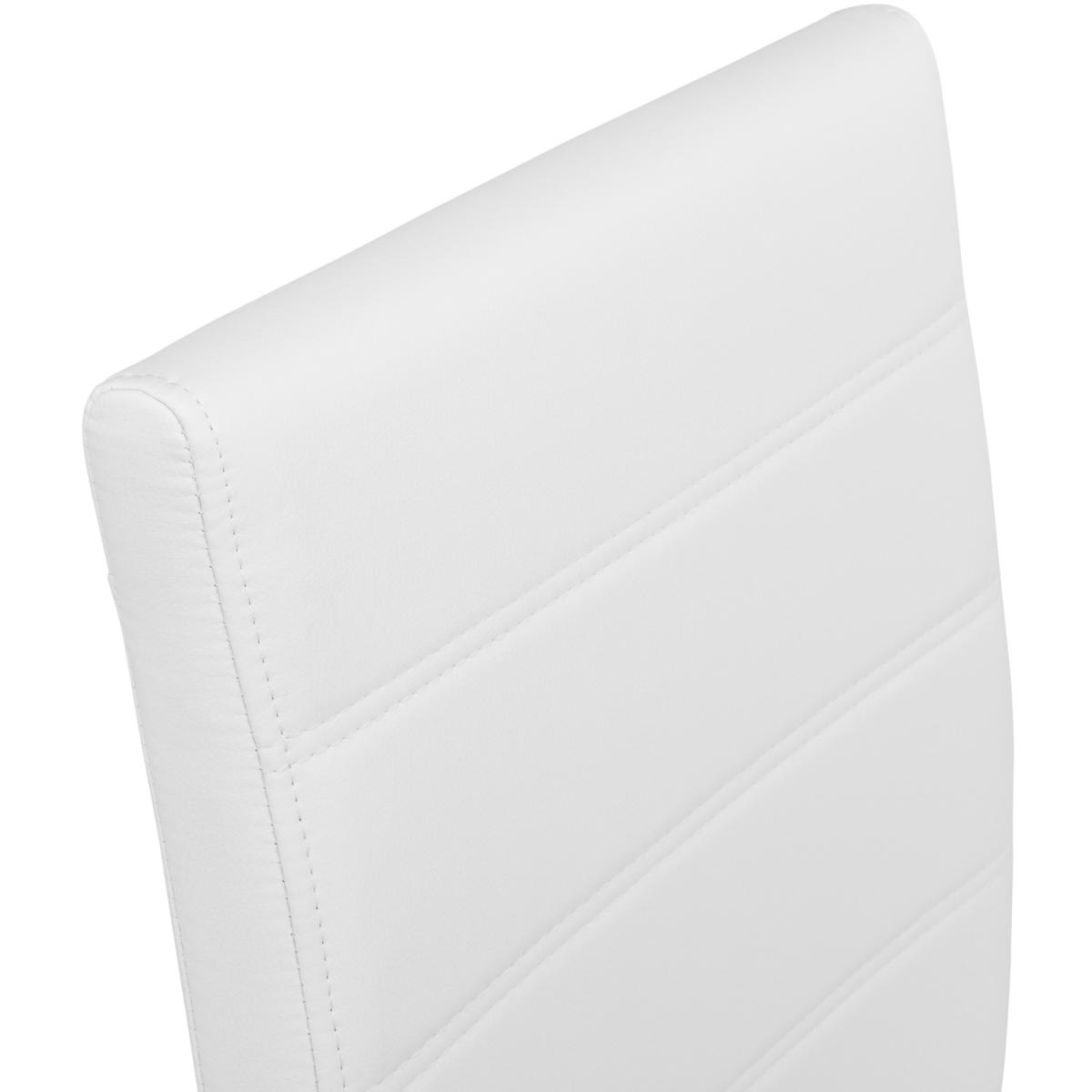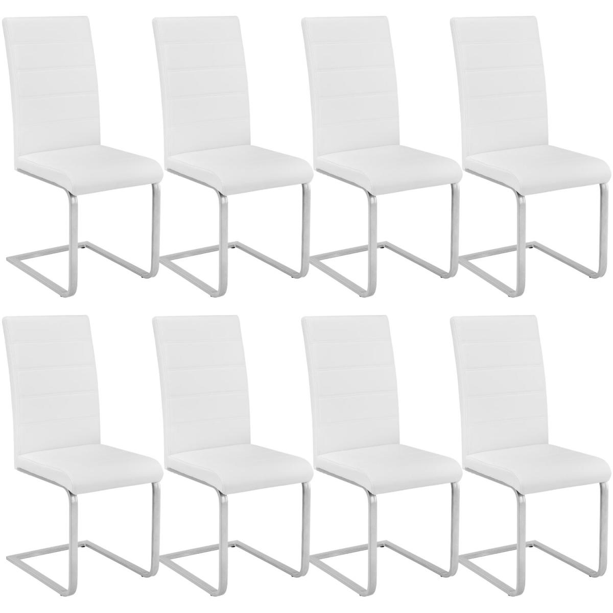 With this set of 8 dining room chairs from tectake, you are adding a timeless seating area to your kitchen, living room or office. These attractive, comfortable, high-backed chairs will also provide a focal point around caf tables or in a waiting room. These padded furniture chairs are well-made, durable, lightweight and easy to clean - perfect for hectic home family life. Thanks to the lightweight, the chairs are easy to move or put away into storage. The curved base is made from matte steel to guarantee stability, and it complements the imitation leather cover perfectly. The dining chairs padded backrest supports an upright posture and provides extra comfort. Elegant, attractive design, very comfortable this set of 8 dining room chairs from tectake will add a finishing touch to any room.