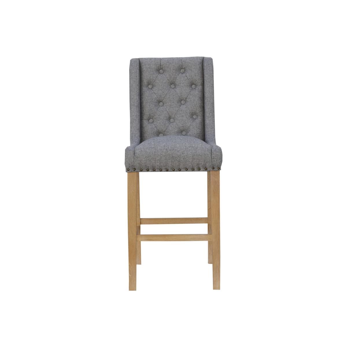 Solid Wood Frame. Bar Footrest. Tufted Uphostery. Material: Oak. Colour/Finish: Grey. Solid Wood Frame. Bar Footrest. Tufted Uphostery. Material: Oak. Colour/Finish: Grey.